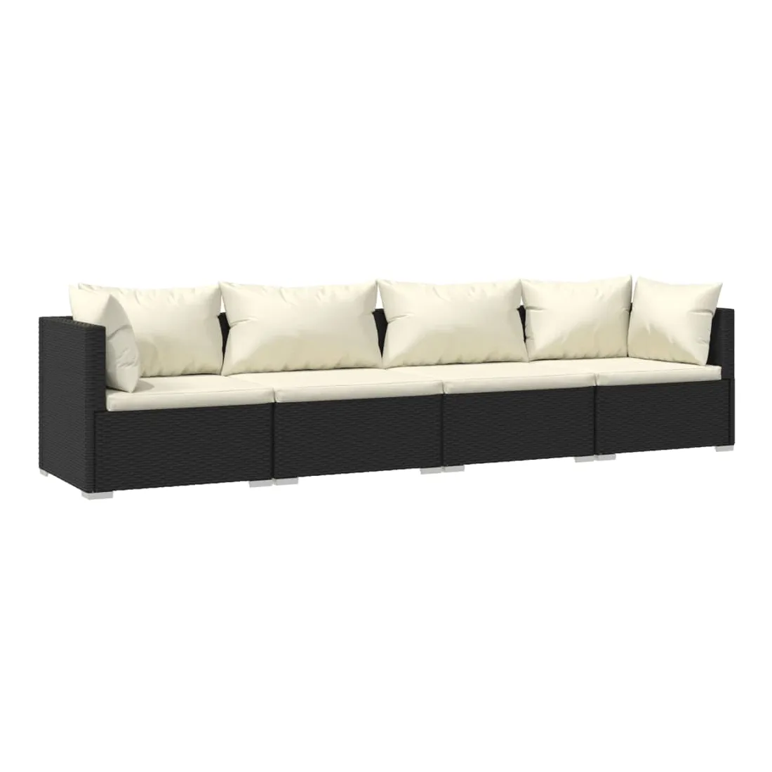 Salon de jardin 4 pcs avec coussins Résine tressée Noir