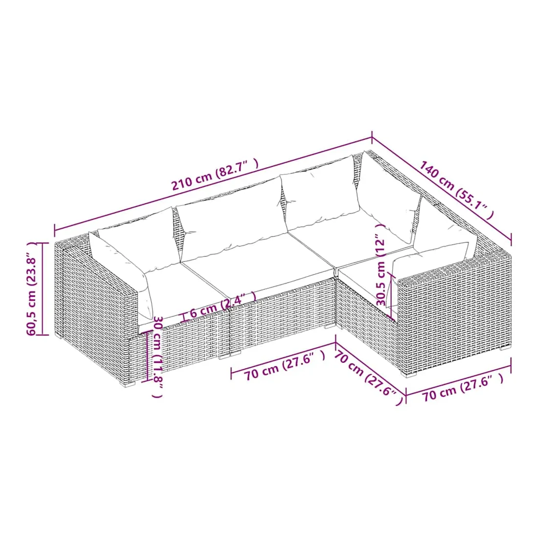 - Dimensions du canapé d'angle/central (chacun) : 70 x 70 x 60,5 cm (L x l x H)