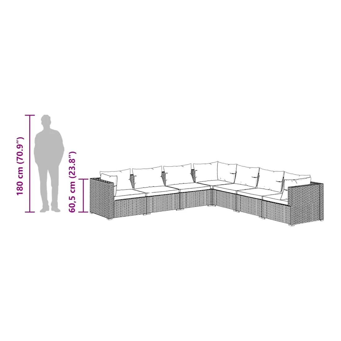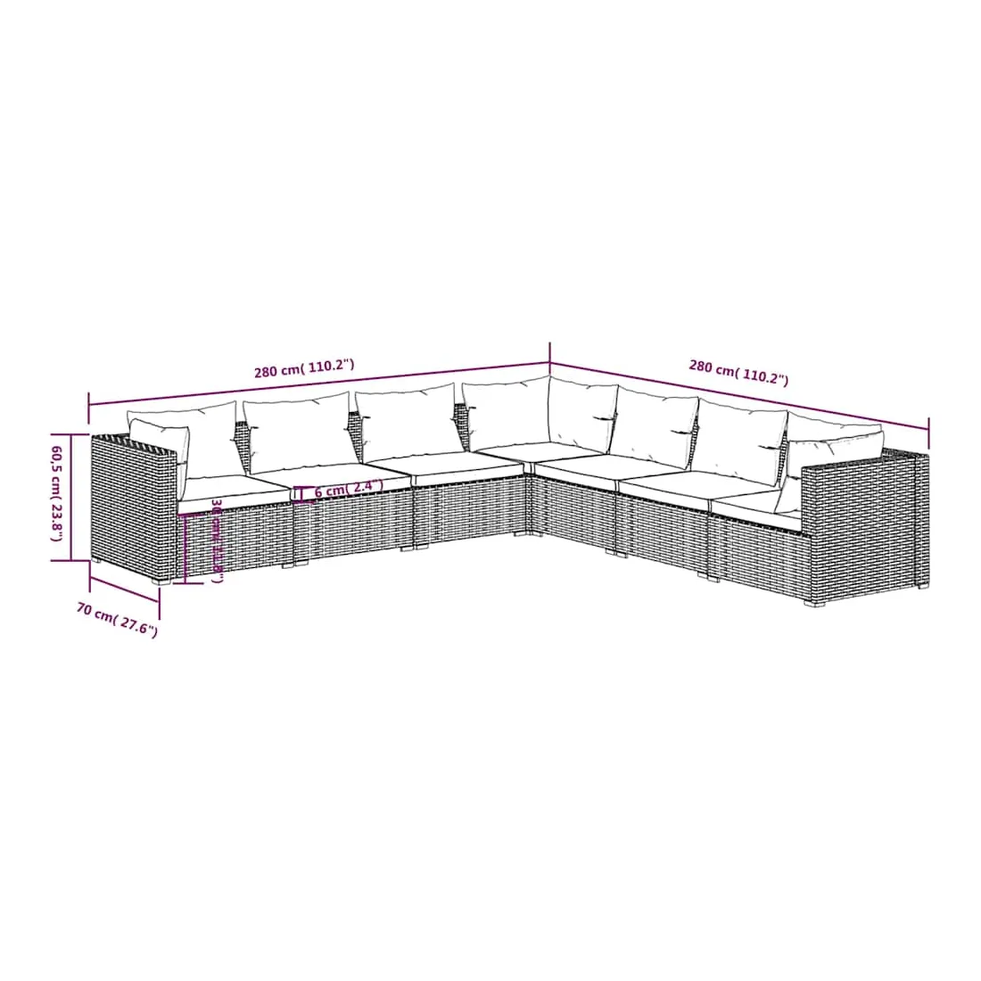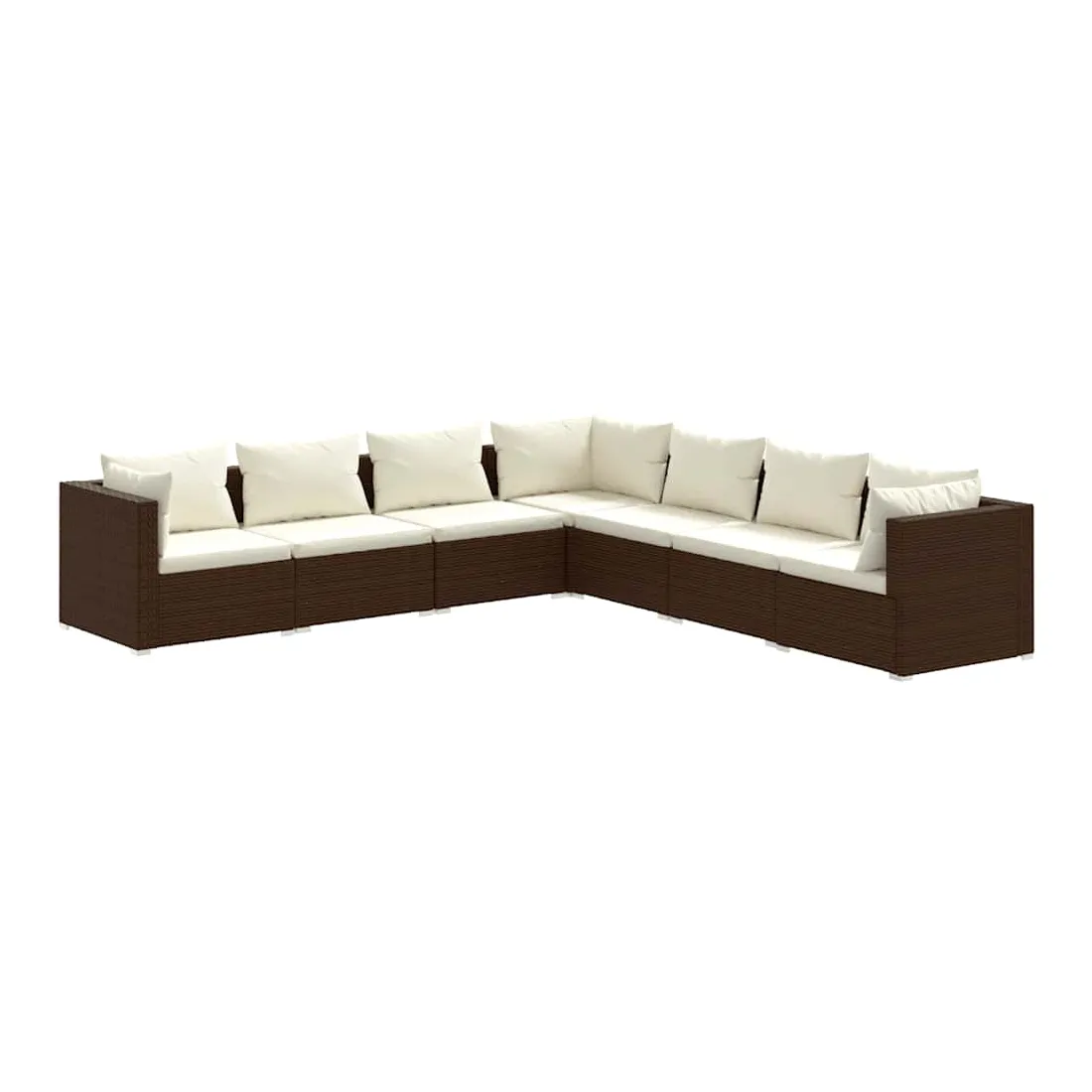 Salon de jardin 7 pcs avec coussins Résine tressée Marron