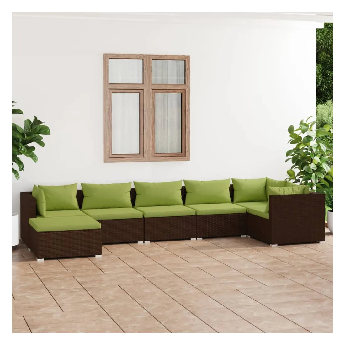 Salon de jardin 7 pcs avec coussins Résine tressée Marron