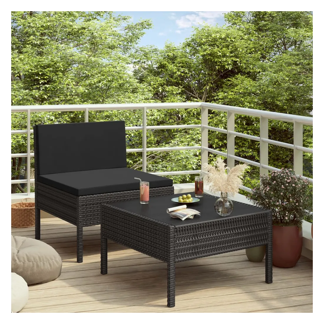 Créez un espace de détente attrayant et relaxant dont vous avez toujours rêvé avec ce salon de jardin. Vous pouvez profiter d’un après-midi ensoleillé ou d'une soirée d'été relaxante avec votre famille et vos amis grâce à cet ensemble de meubles de jardin ! Avec la résine tressée résistante aux intempéries et imperméable, ce salon de jardin est facile à nettoyer et à entretenir. Le cadre en acier enduit de poudre rend le canapé et la table à thé stables et solides. Équipé de coussins épais et moelleux, ce canapé de milieu offrira un confort d’assise ultime. Les housses en polyester faciles à nettoyer peuvent être retirées et lavées. La table basse est idéale pour garder la nourriture et les boissons à portée de main. De plus, grâce à sa conception légère et modulaire, vous pouvez déplacer cet ensemble dans votre maison avec une grande facilité. Remarque : nous vous recommandons de couvrir l'ensemble pendant la pluie, la neige et le gel.