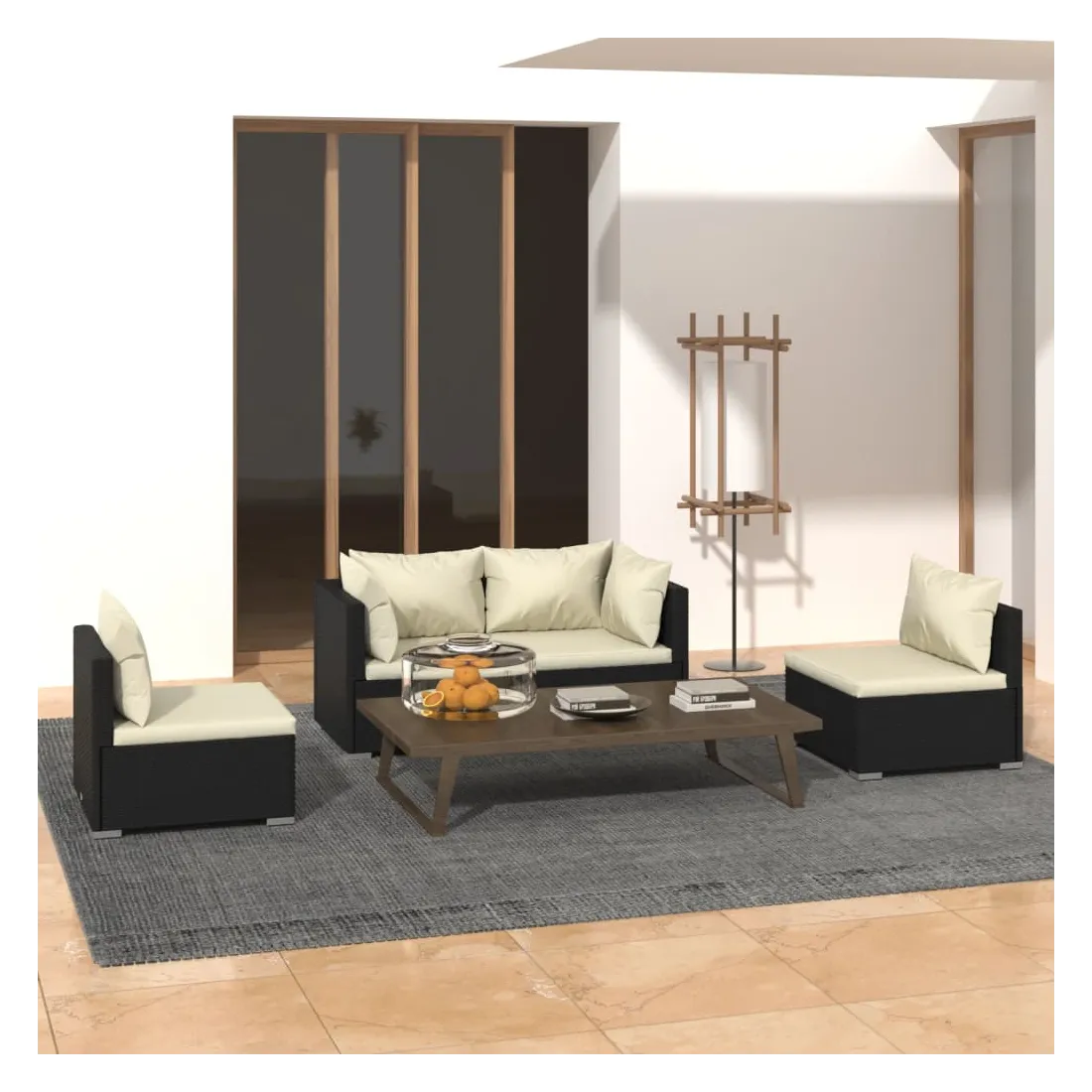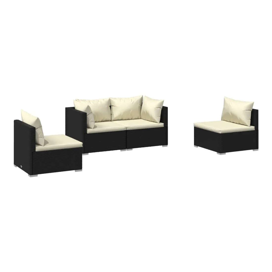 Salon de jardin 4 pcs avec coussins Résine tressée Noir