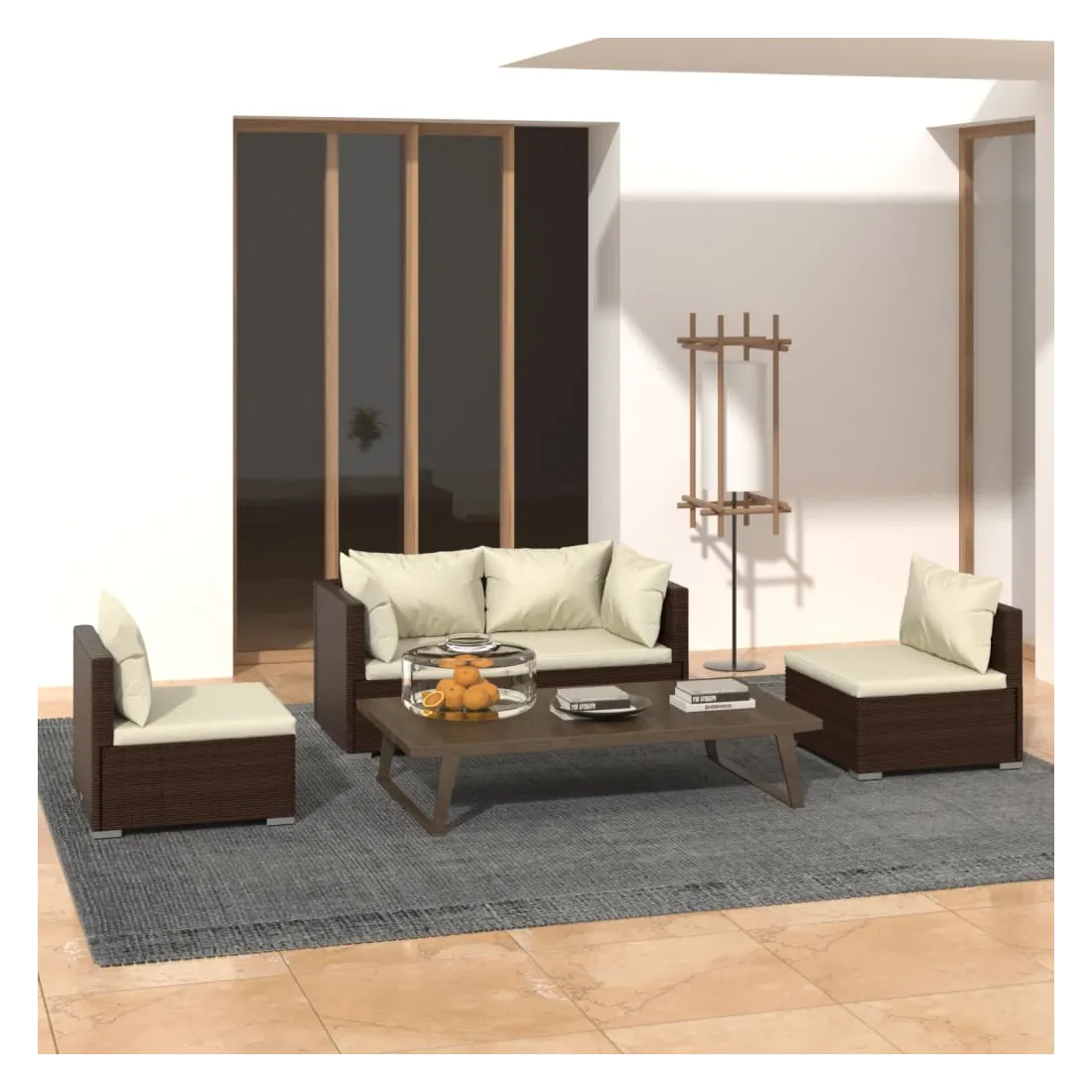 Salon de jardin 4 pcs avec coussins Résine tressée Marron