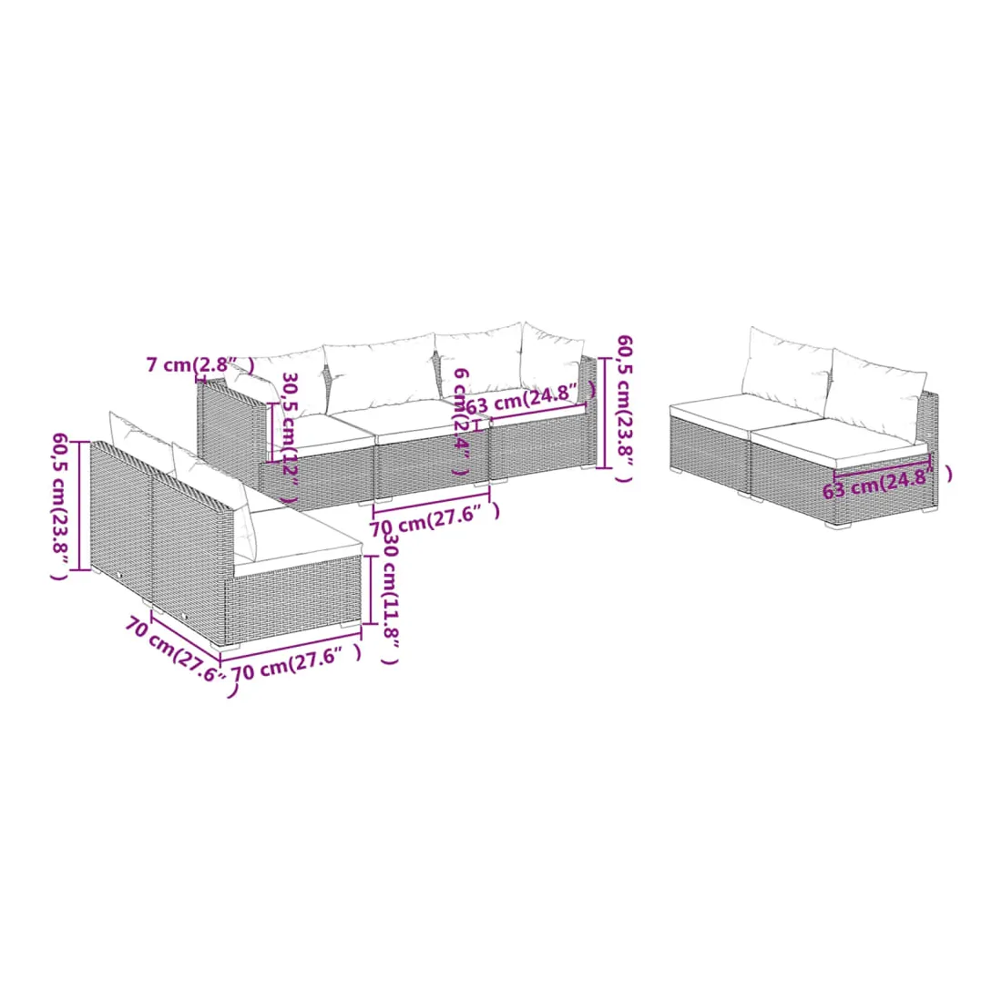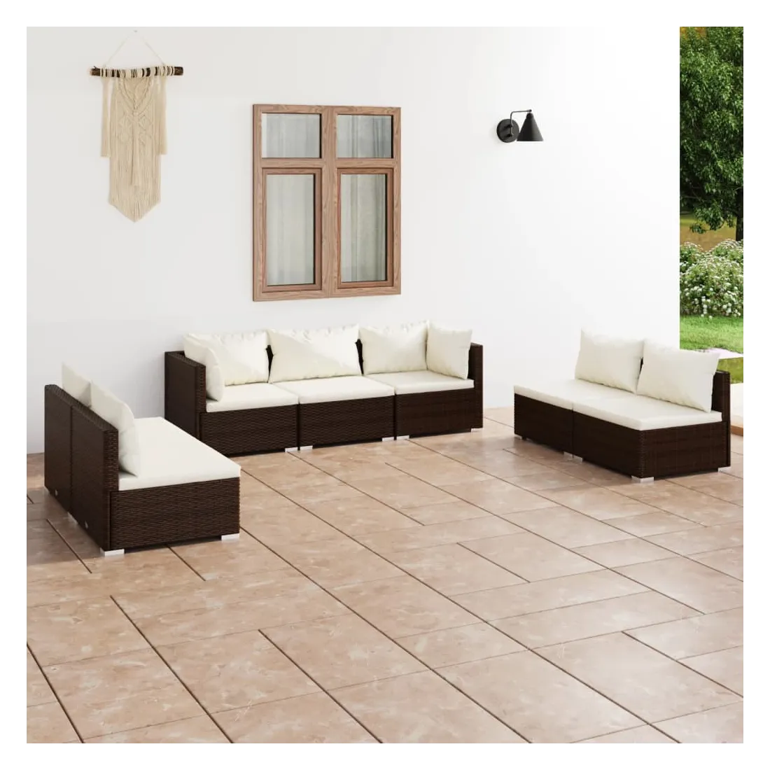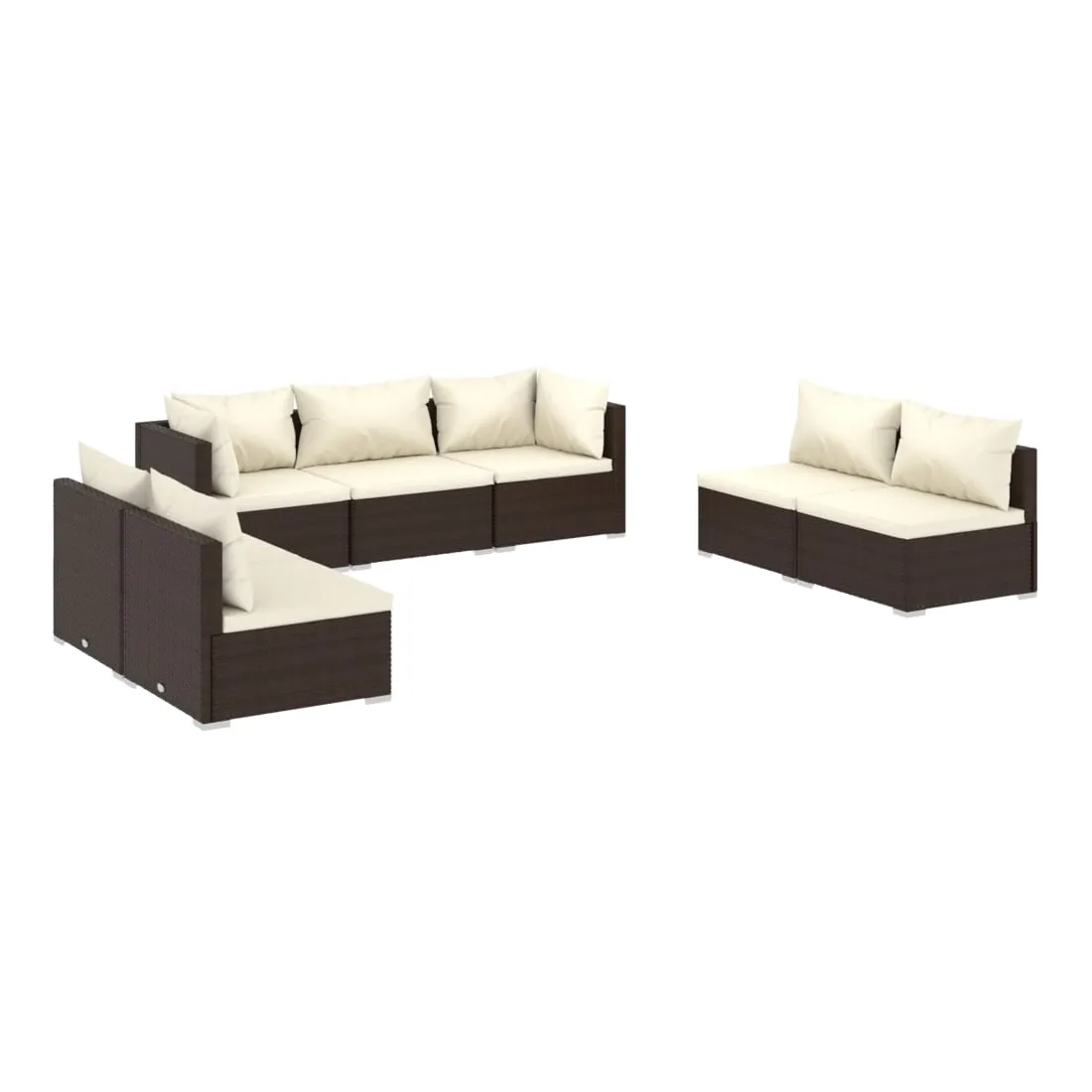 Salon de jardin 7 pcs avec coussins Résine tressée Marron