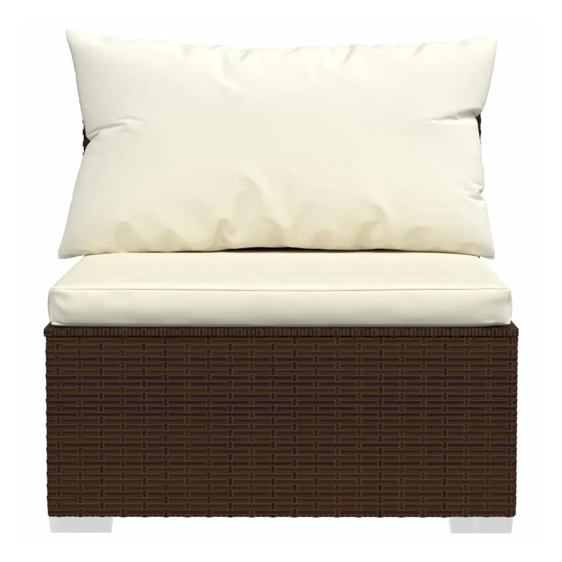 vidaXLProfitez de votre temps de détente sur cet ensemble de salon de jardin tendance ! Il peut répondre à une variété de besoins différents. Cadre robuste : cet ensemble de meubles de patio est doté d'un cadre solide en acier enduit de poudre et de pieds en plastique chromé, ce qui est très durable.Matériau haut de gamme : l'ensemble de canapés de jardin est conçu avec de la résine tressée résistante à l'eau, ce qui le rend facile à nettoyer, résistant à l'usure et adapté à une utilisation quotidienne à l'extérieur.Design modulaire : la conception modulaire permet de placer l'ensemble dans n'importe quelle disposition ou de le combiner avec d'autres segments modulaires pour répondre à vos besoins.Confort d'assise accru : les coussins et les oreillers bien rembourrés et amovibles offrent un confort optimal pour votre expérience d'assise à l'extérieur. Remarque :Afin de prolonger la durée de vie de votre mobilier d'extérieur, nous vous recommandons de le protéger avec une housse imperméable.