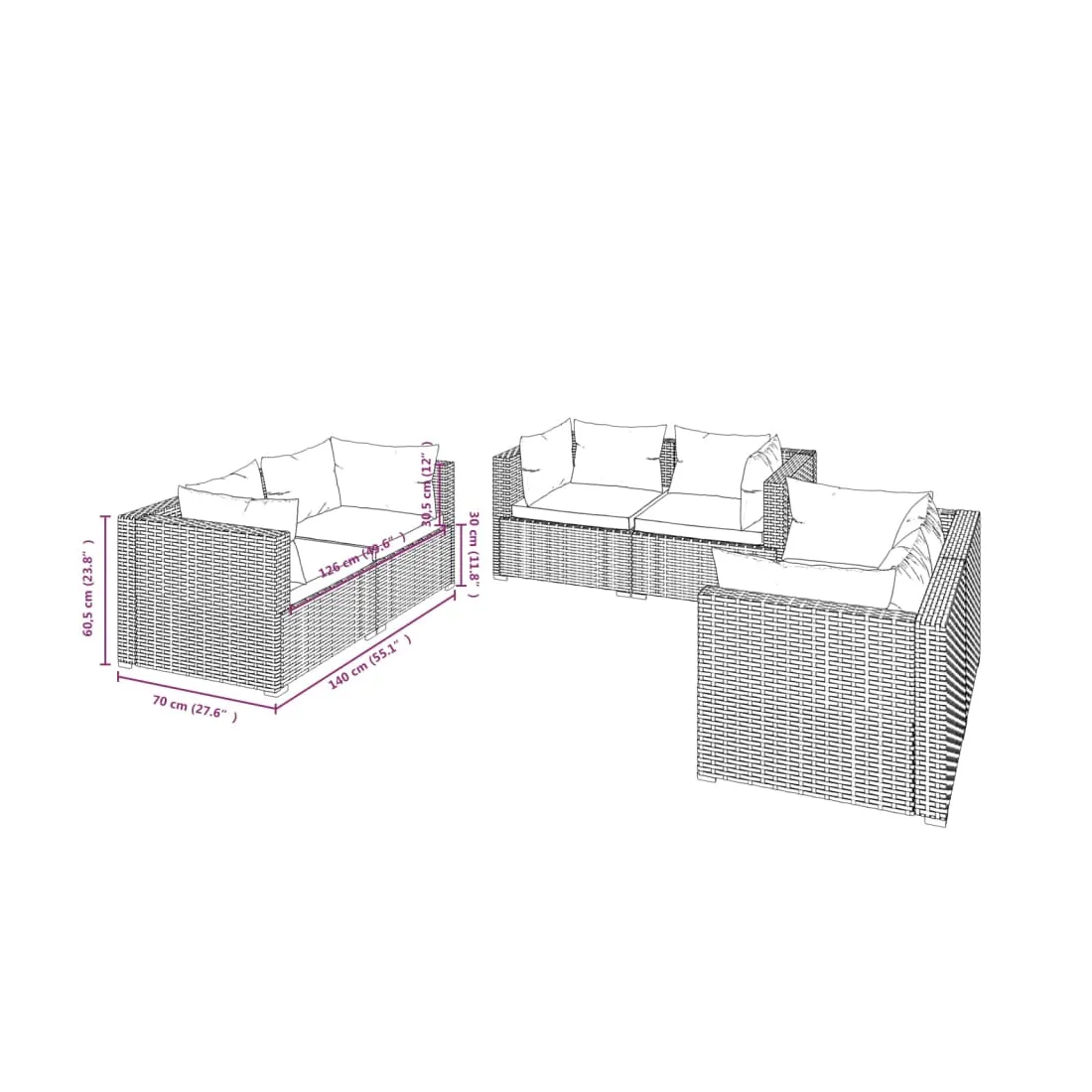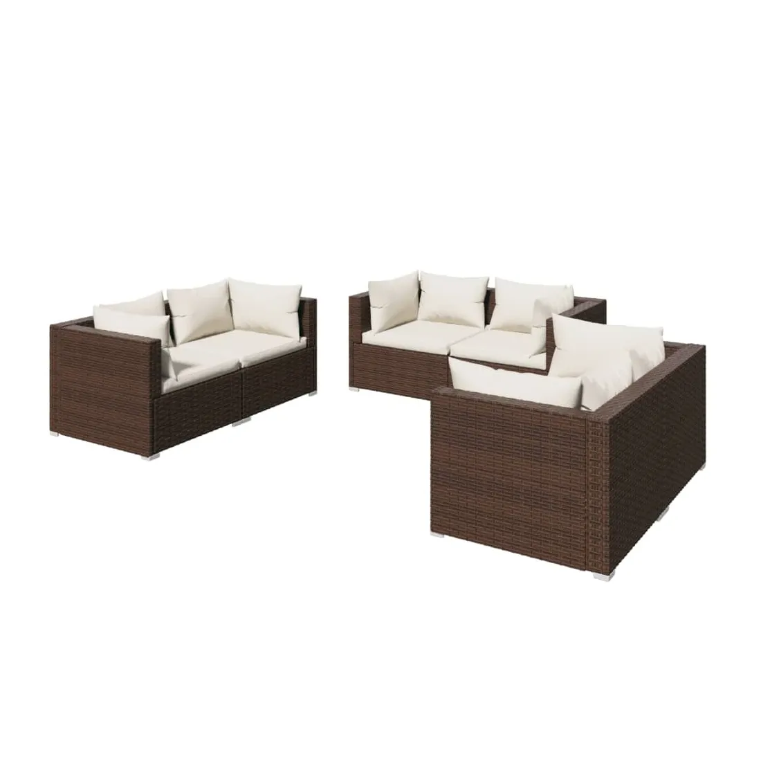 Profitez de votre temps de détente sur cet ensemble de salon de jardin tendance ! Il peut répondre à une variété de besoins différents. Cadre robuste : cet ensemble de meubles de patio est doté d'un cadre solide en acier enduit de poudre et de pieds en plastique chromé, ce qui est très durable.Matériau haut de gamme : l'ensemble de canapés de jardin est conçu avec de la résine tressée résistante à l'eau, ce qui le rend facile à nettoyer, résistant à l'usure et adapté à une utilisation quotidienne à l'extérieur.Design modulaire : la conception modulaire permet de placer l'ensemble dans n'importe quelle disposition ou de le combiner avec d'autres segments modulaires pour répondre à vos besoins.Confort d'assise accru : les coussins et les oreillers bien rembourrés et amovibles offrent un confort optimal pour votre expérience d'assise à l'extérieur. Remarque :Afin de prolonger la durée de vie de votre mobilier d'extérieur, nous vous recommandons de le protéger avec une housse imperméable.