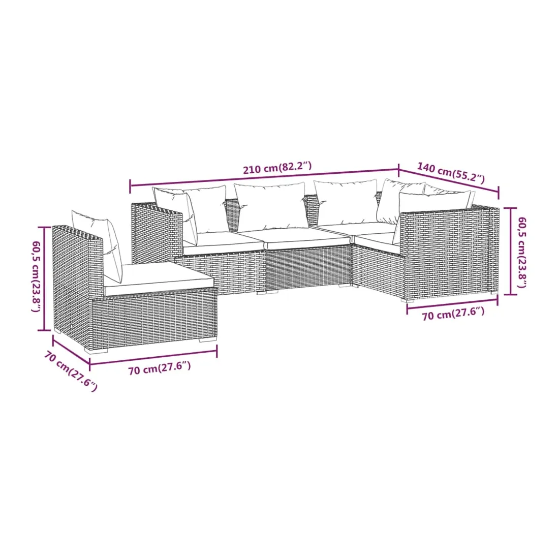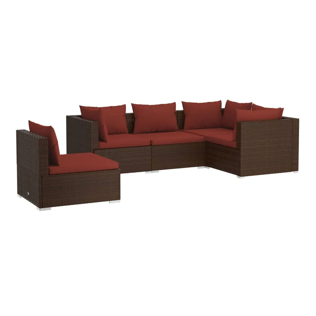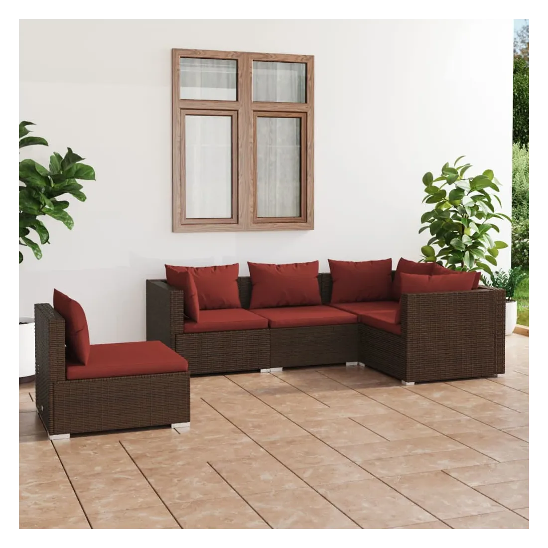 Salon de jardin 5 pcs avec coussins résine tressée marron