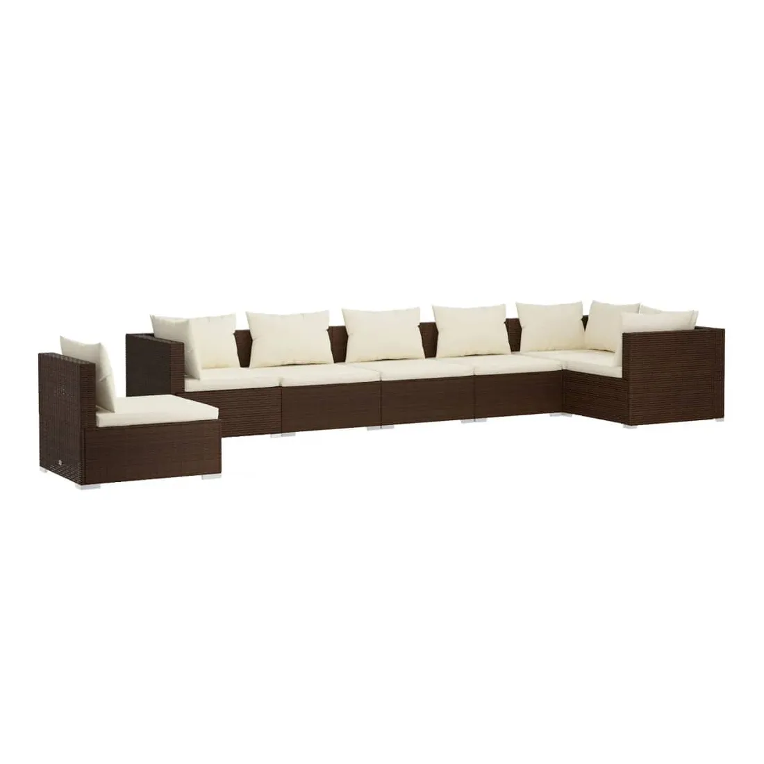 Salon de jardin 7 pcs avec coussins Résine tressée Marron