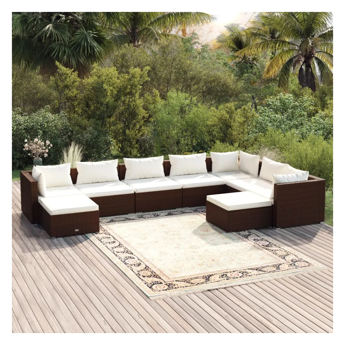 Salon de jardin 9 pcs avec coussins Résine tressée Marron