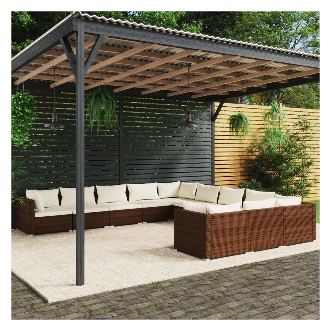 vidaXLDétendez-vous et profitez de l'espace extérieur avec votre famille et vos amis sur ce salon de jardin classique en résine tressée avec coussins ! Matériau haut de gamme : l'ensemble de meubles de patio est conçu avec de la résine tressée résistante à l'eau et aux intempéries, ce qui le rend facile à nettoyer, résistant à l'usure et adapté à une utilisation quotidienne à l'extérieur.Cadre robuste : cet ensemble de salon d'extérieur est fabriqué avec un cadre en acier enduit de poudre robuste et des pieds chromés en plastique qui offrent une durabilité.Coussins confortables : les coussins bien rembourrés et amovibles sont en tissu doux au toucher et vous apportent un confort supplémentaire.Design modulaire : cet ensemble de salon en rotin est modulaire et léger. Il est également flexible de placer l'ensemble dans n'importe quel arrangement ou de le combiner avec d'autres segments modulaires pour répondre à vos besoins. Remarque :Afin de prolonger la durée de vie de votre mobilier d'extérieur, nous vous recommandons de le protéger avec une housse imperméable.