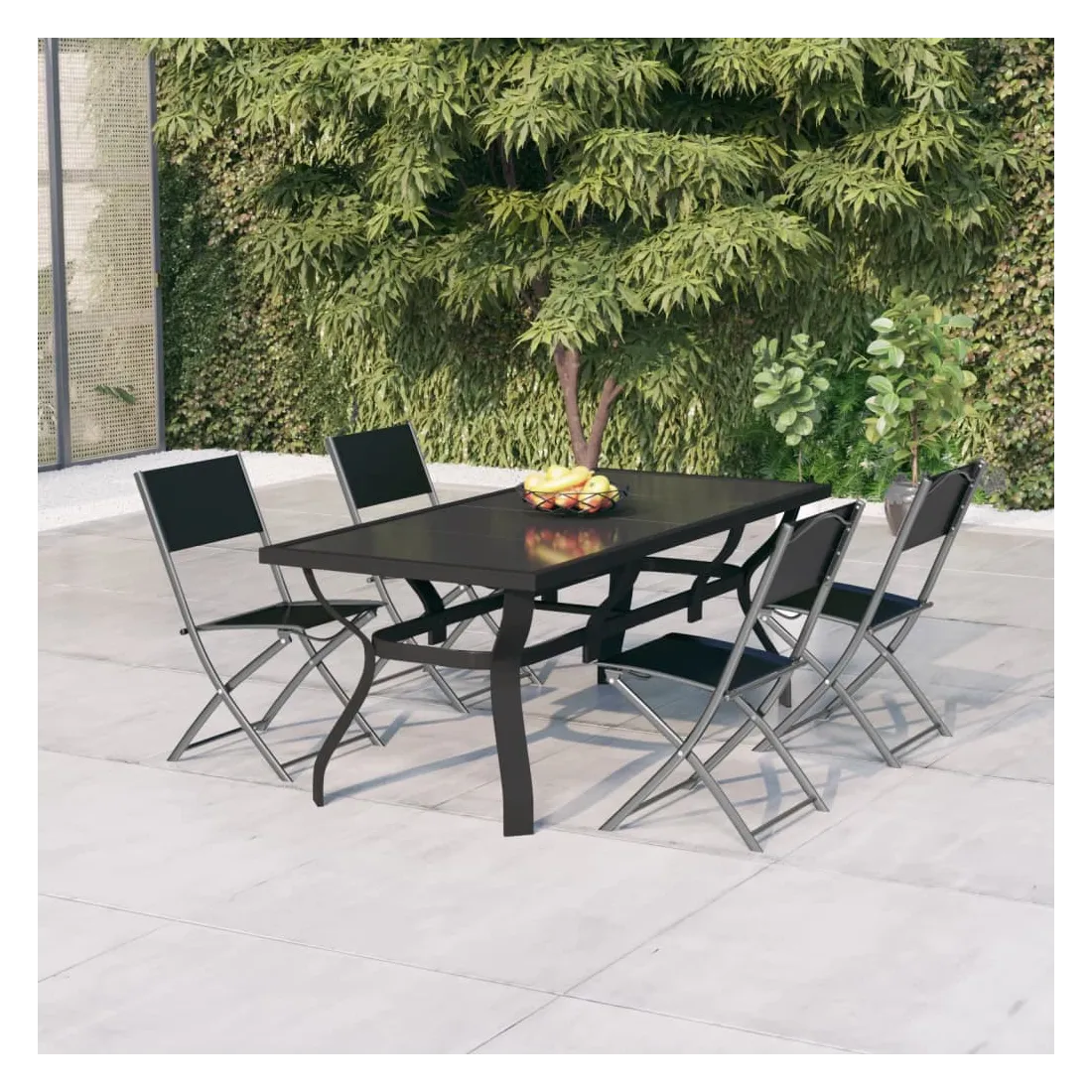 Cet ensemble de salle à manger de jardin, au design élégant, est un excellent choix pour dîner ou vous détendre sur votre patio ou dans votre jardin. Cadre robuste : la table et les chaises, dotées d'une structure en acier enduit de poudre, sont durables et stables.Matériau durable : grâce au tissu textilène résistant à l'eau et respirant, les chaises de jardin sont résistantes à l'usure, faciles à entretenir et convient à un usage quotidien à l'extérieur.Design pliable : les chaises de salle à manger peuvent être pliées pour économiser de l'espace lorsqu'elles ne sont pas utilisées.Pieds de table élégants : les pieds de la table de patio sont élégamment fabriqués, avec des détails dynamiques courbés et assurant sa solidité et sa beauté. C'est pourquoi il s'agit d'une pièce remarquable pour votre extérieur.Dessus pratique et facile à nettoyer : le dessus de table en verre lisse est facile à nettoyer à l'aide d'un chiffon humide et est parfait pour placer des repas, des boissons et d'autres objets décoratifs. Remarque :Afin de prolonger la durée de vie de votre mobilier d'extérieur, nous vous recommandons de le protéger avec une housse imperméable.