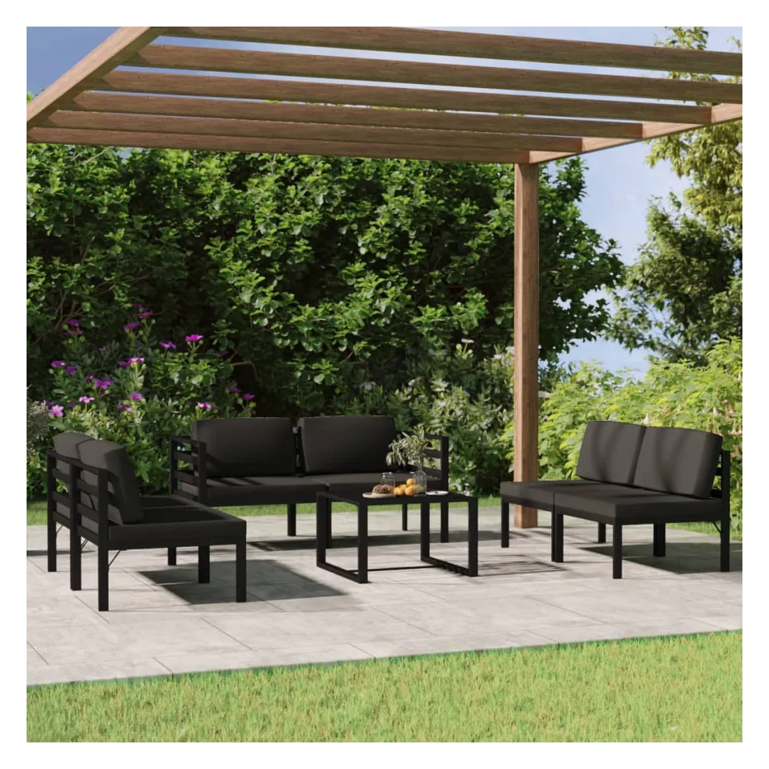 Salon de jardin 7 pcs avec coussins Aluminium Anthracite