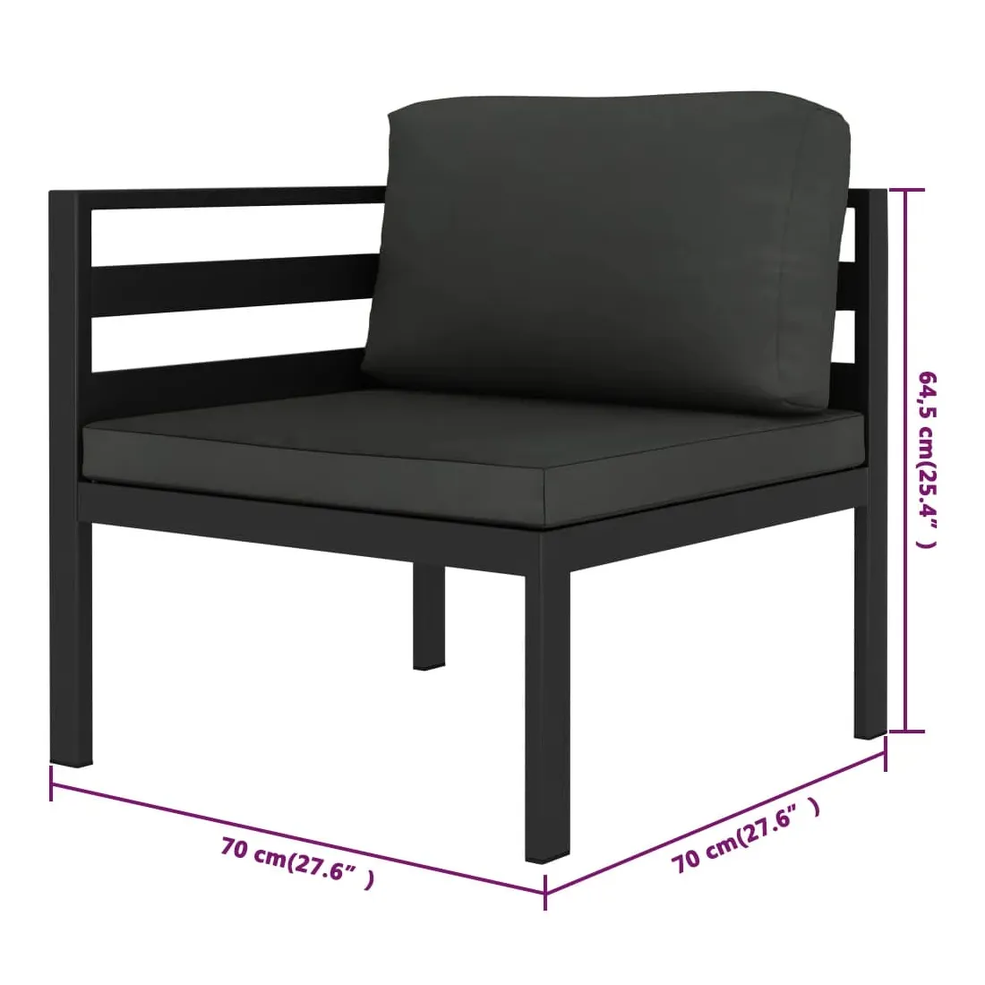 Alliant style et fonctionnalité, ce salon de jardin en aluminium vous offre un endroit parfait pour vous détendre et profiter du plus grand confort possible. Design modulaire : cet ensemble de salon de patio présente une conception modulaire qui vous permet de combiner ses sections modulaires dans différentes configurations, selon vos goûts !Matériau haut de gamme : fabriqué en aluminium, l'ensemble de salon d'extérieur est résistant aux intempéries et robuste. La construction légère facilite son déplacement.Coussins et oreillers confortables : les coussins de siège et les oreillers de dossier sont inclus pour votre confort. Remarque :Afin de prolonger la durée de vie de votre mobilier d'extérieur, nous vous recommandons de le protéger avec une housse imperméable.