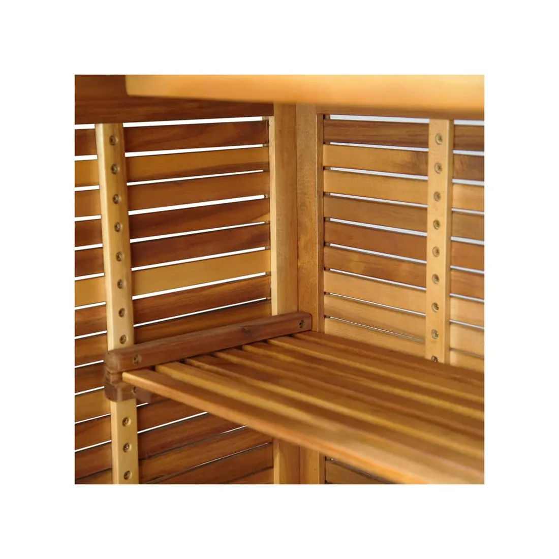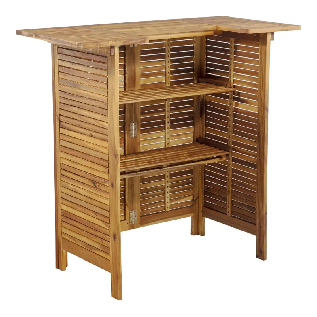 Cet ensemble de bar de jardin en bois a un design élégant et est destiné à être le point central de votre jardin, patio ou terrasse. Bois d'acacia massif : le bois d'acacia massif est un magnifique matériau naturel. Le bois d'acacia est un bois dur tropical, dense, robuste et durable. De plus, la surface à finition à l'huile facilite le nettoyage de la table et des chaises de jardin.Cadre en bois robuste : les cadres en bois de l'ensemble de salle à manger d'extérieur garantissent la solidité et la stabilité.Étagères pratiques : la table de bistrot dispose de 2 étagères pour garder les aliments et les boissons à portée de main.Tabourets de bar confortables : les repose-pieds de ces tabourets de bar en bois offrent un confort d'assise supplémentaire.Look intemporel : le design épuré de la table de bistrot et des tabourets en bois en fait un investissement intemporel pour votre maison. Remarque :Afin de prolonger la durée de vie de votre mobilier d'extérieur, nous vous recommandons de le protéger avec une housse imperméable.