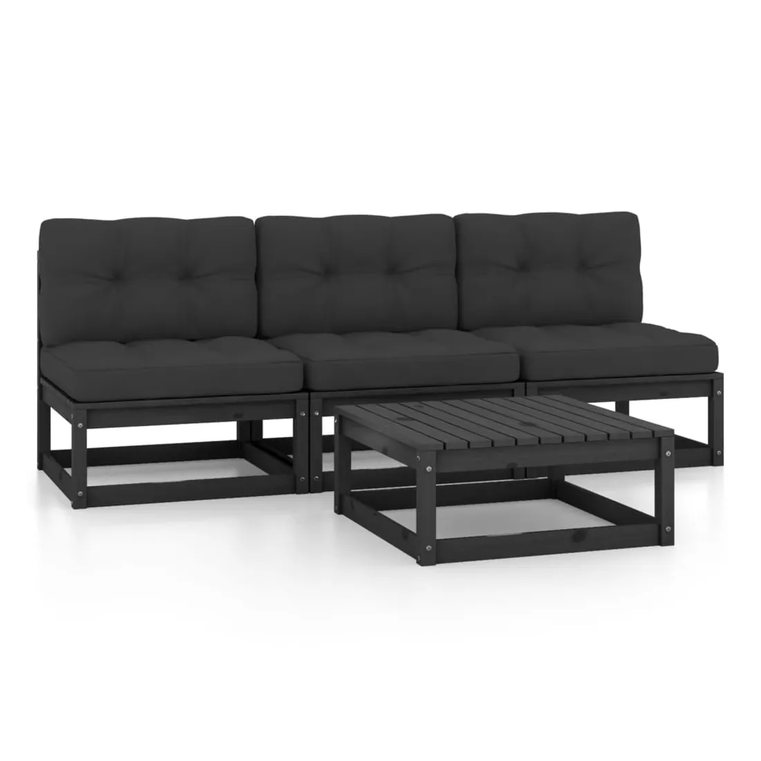 Salon de jardin 4 pcs avec coussins Bois de pin massif