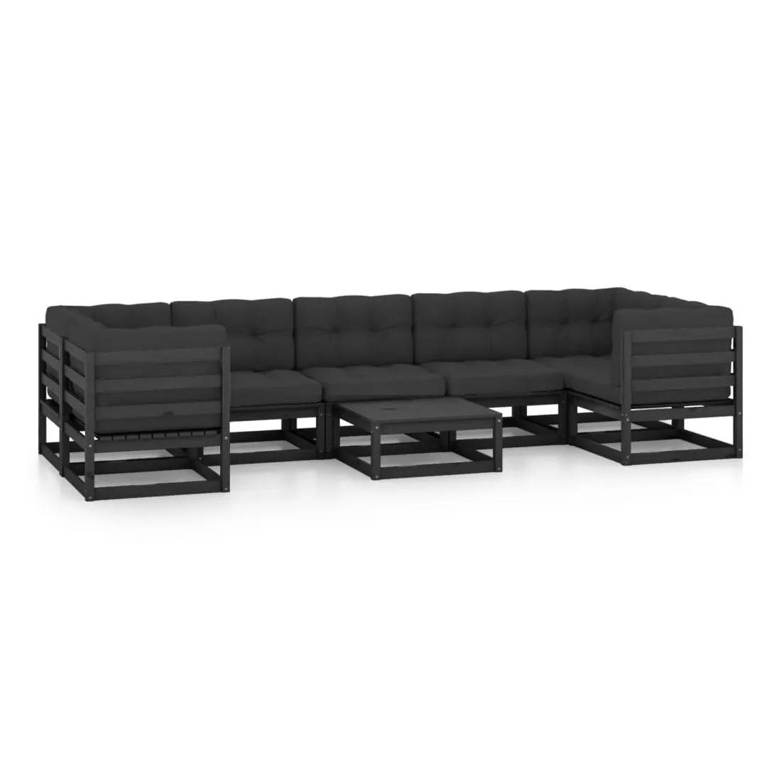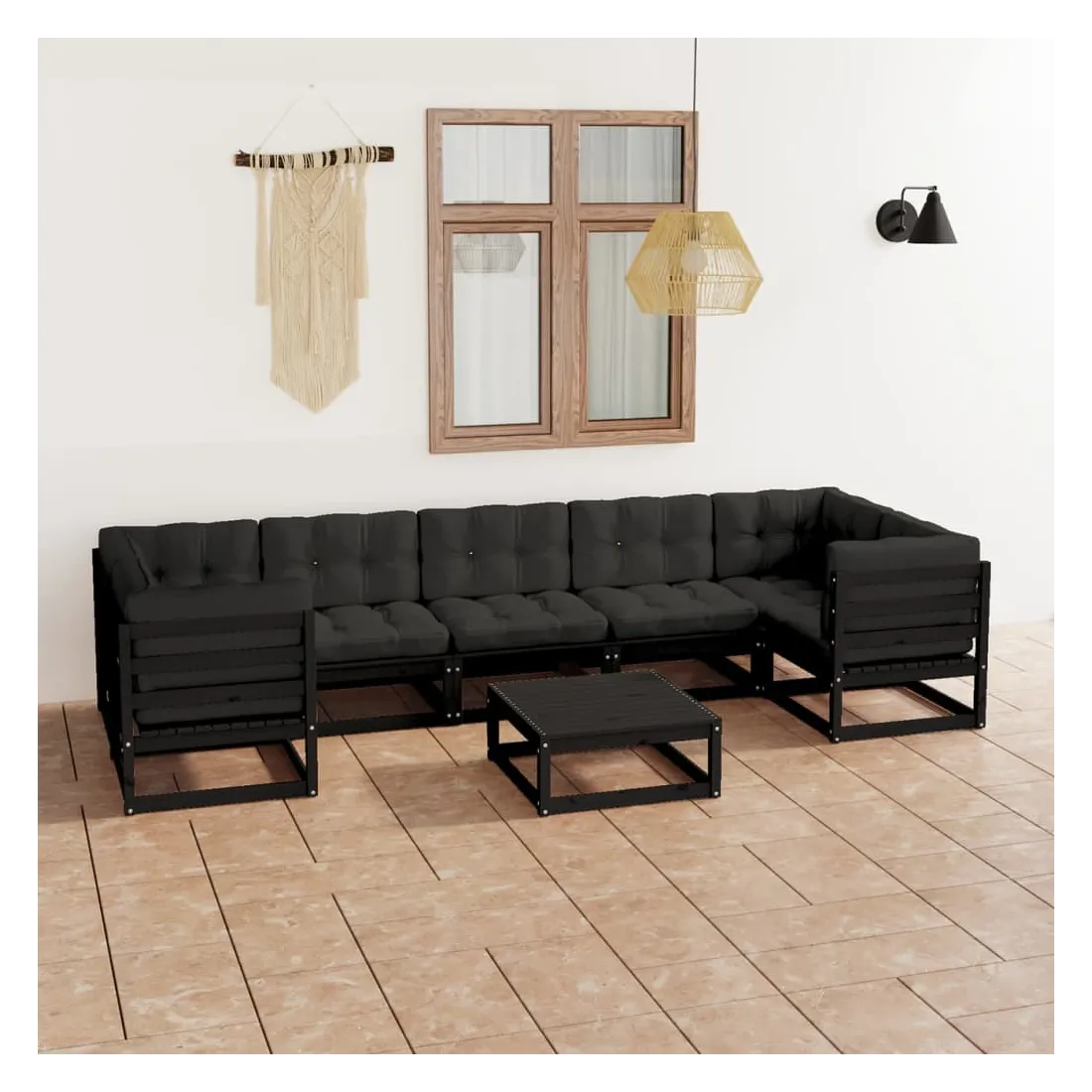 Salon de jardin 8 pcs avec coussins Noir Bois de pin massif