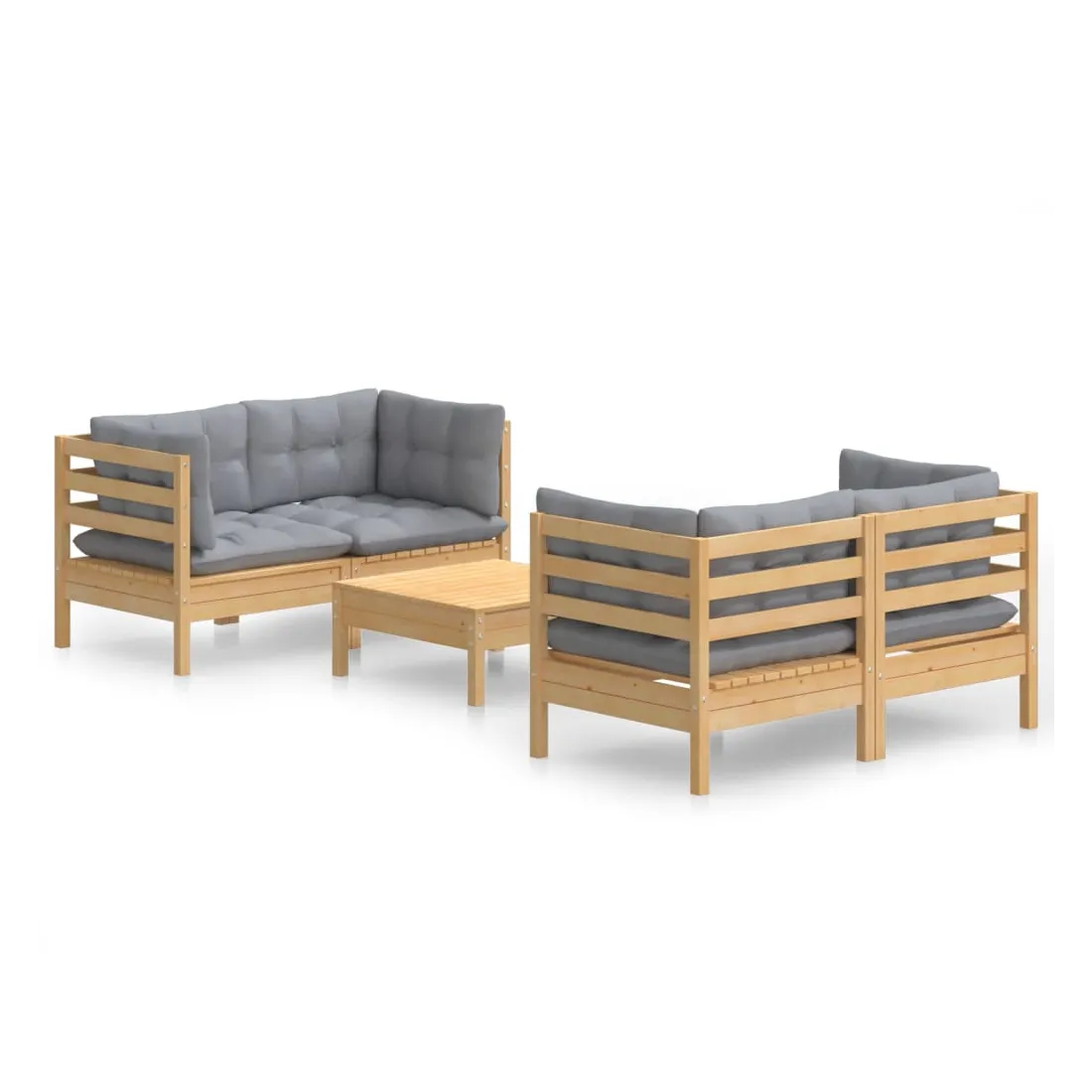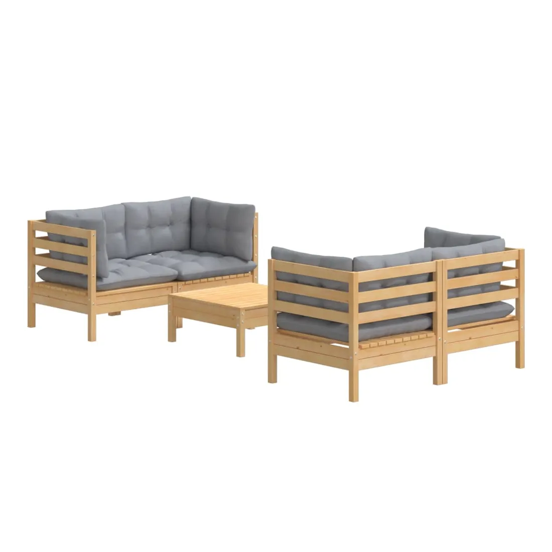 Ce salon de jardin est un excellent choix pour vous détendre et profiter du beau temps, faire une sieste ou discuter avec votre famille ou vos amis. Le salon de patio est fabriqué en bois de pin massif, ce qui le rend robuste et stable. Les coussins ajoutent un confort supplémentaire. Vous pouvez le combiner avec d’autres segments modulaires pour créer vos propres configurations de salon de jardin ! Remarque : afin de prolonger la durée de vie des meubles d'extérieur, nous vous recommandons de les protéger avec une housse imperméable.