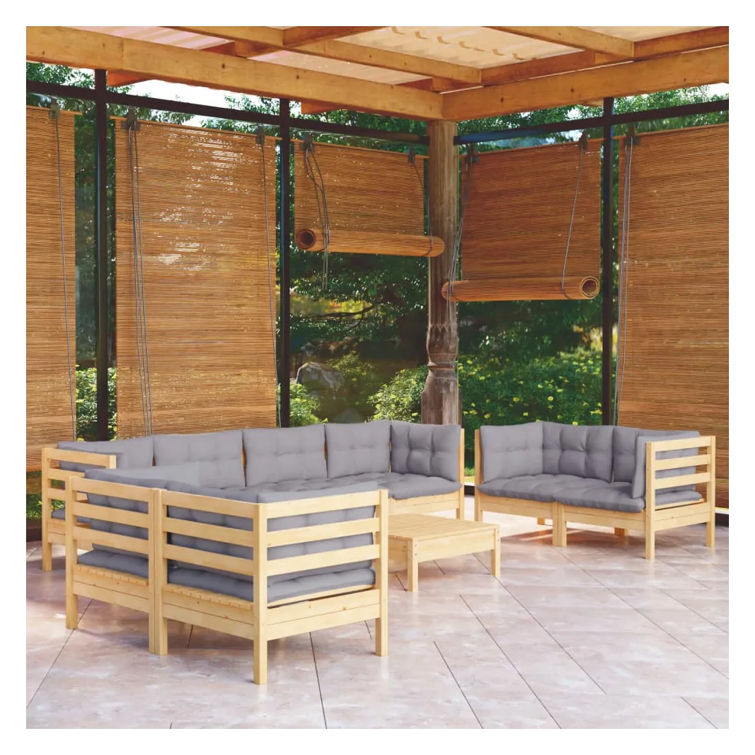 Ce salon de jardin est un excellent choix pour vous détendre et profiter du beau temps, faire une sieste ou discuter avec votre famille ou vos amis. Le salon de patio est fabriqué en bois de pin massif, ce qui le rend robuste et stable. Les coussins ajoutent un confort supplémentaire. Vous pouvez le combiner avec d’autres segments modulaires pour créer vos propres configurations de salon de jardin ! Remarque : afin de prolonger la durée de vie des meubles d'extérieur, nous vous recommandons de les protéger avec une housse imperméable.