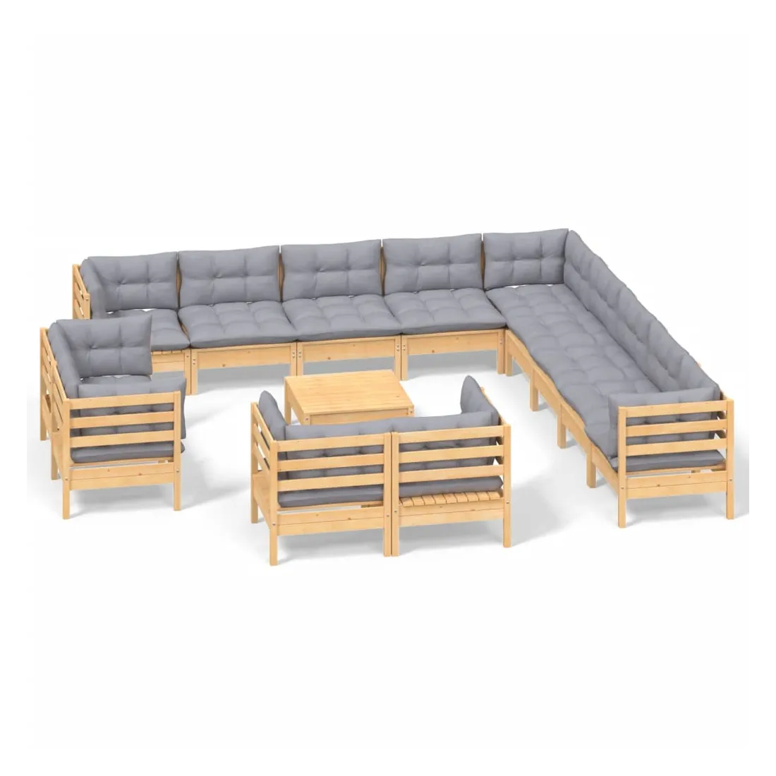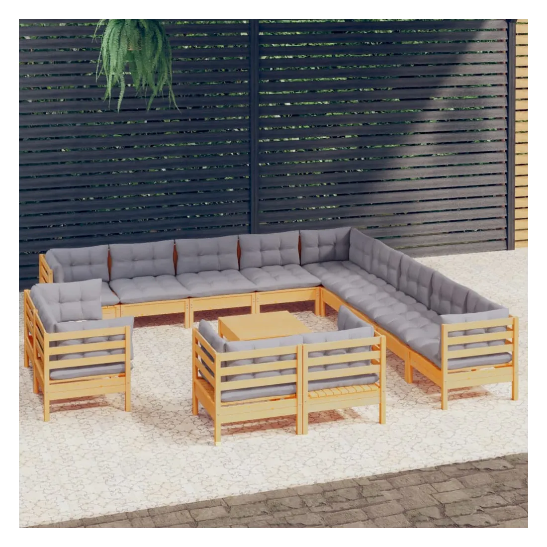 Ce salon de jardin est un excellent choix pour vous détendre et profiter du beau temps, faire une sieste ou discuter avec votre famille ou vos amis. Le salon de patio est fabriqué en bois de pin massif, ce qui le rend robuste et stable. Les coussins ajoutent un confort supplémentaire. Vous pouvez le combiner avec d’autres segments modulaires pour créer vos propres configurations de salon de jardin ! Remarque : afin de prolonger la durée de vie des meubles d'extérieur, nous vous recommandons de les protéger avec une housse imperméable.