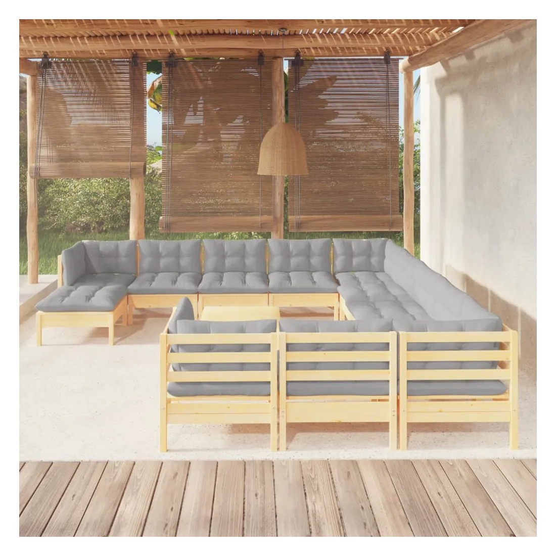 Cet ensemble de salon de jardin en bois est un choix excellent pour vous détendre et profiter du bon temps, faire une sieste ou discuter avec votre famille ou vos amis. Le salon de patio est fabriqué en bois de pin massif, ce qui le rend robuste et stable. Les coussins ajoutent un confort supplémentaire. Vous pouvez le combiner avec d’autres segments modulaires pour créer vos propres configurations de salon de jardin ! Remarque : afin de prolonger la durée de vie des meubles d'extérieur, nous vous recommandons de les protéger avec une housse imperméable.