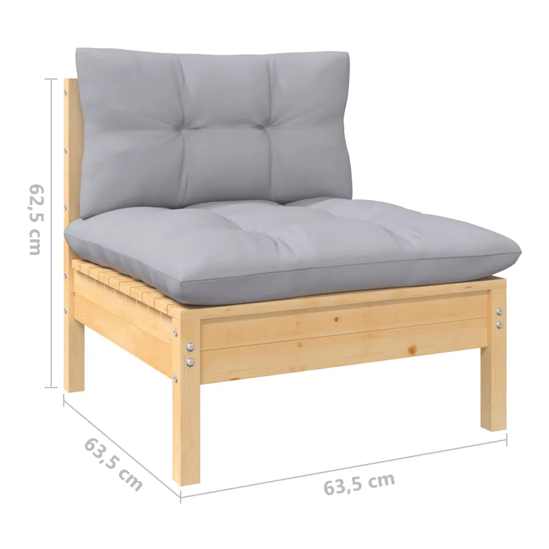 - Dimensions du canapé central/d'angle : 63,5 x 63,5 x 62,5 cm (l x P x H)
