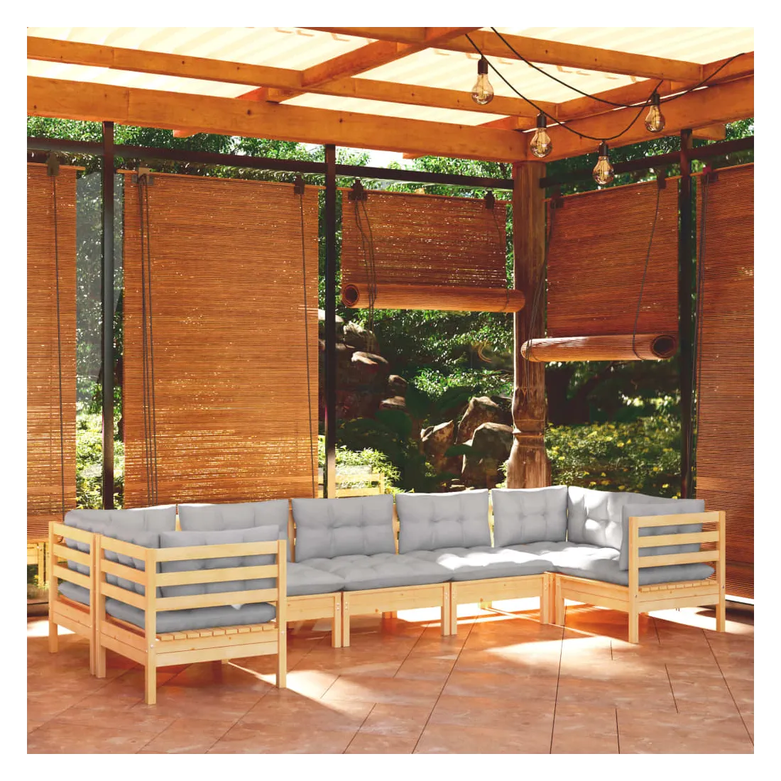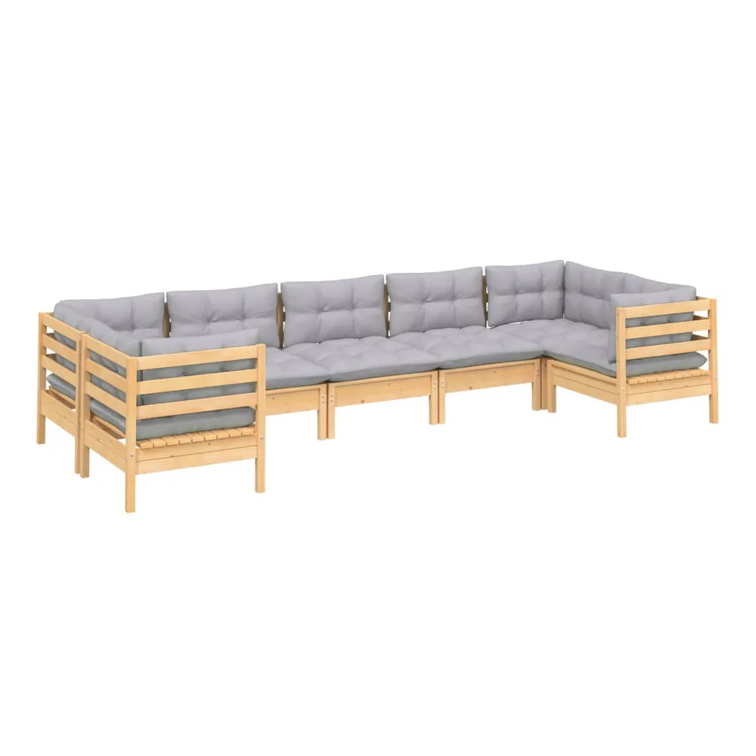 Cet ensemble de salon de jardin en bois est un choix excellent pour vous détendre et profiter du bon temps, faire une sieste ou discuter avec votre famille ou vos amis. Le salon de patio est fabriqué en bois de pin massif, ce qui le rend robuste et stable. Les coussins ajoutent un confort supplémentaire. Vous pouvez le combiner avec d’autres segments modulaires pour créer vos propres configurations de salon de jardin ! Remarque : afin de prolonger la durée de vie des meubles d'extérieur, nous vous recommandons de les protéger avec une housse imperméable.
