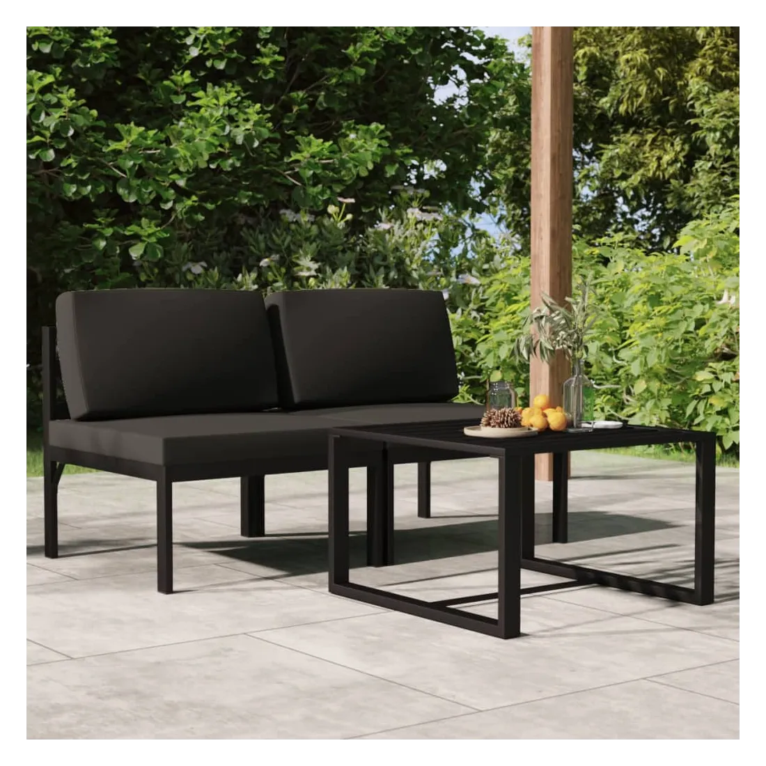 Salon de jardin 3 pcs avec coussins Aluminium Anthracite