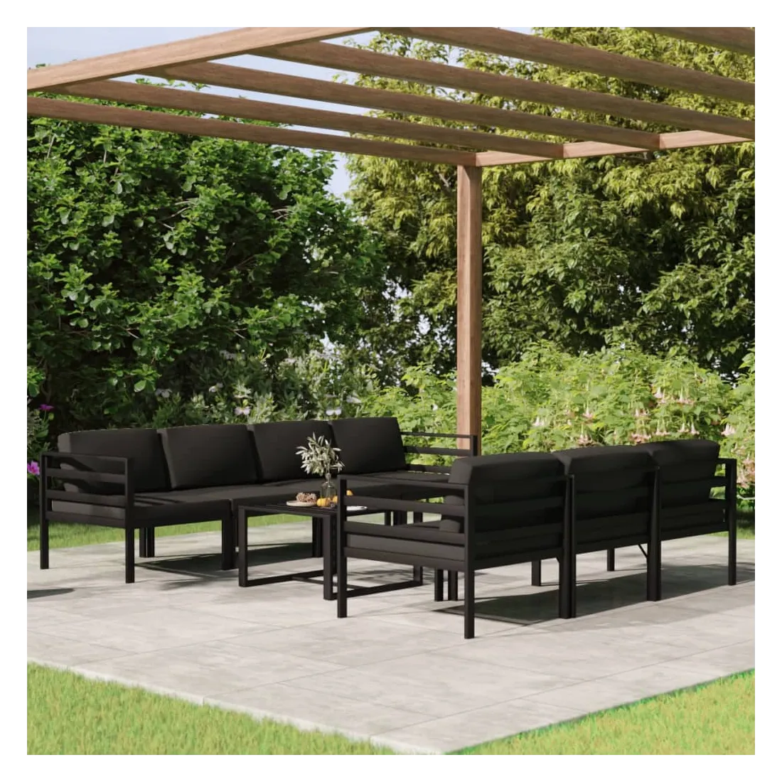Salon de jardin 8 pcs avec coussins Aluminium Anthracite