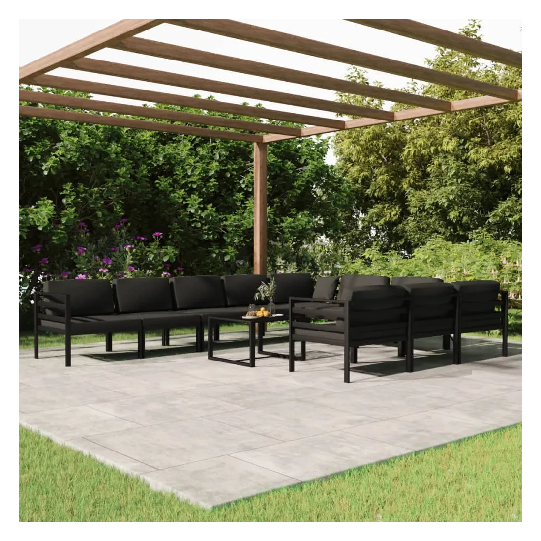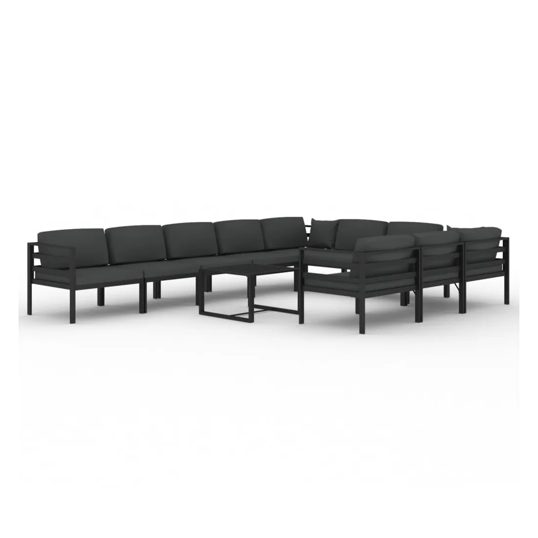 Salon de jardin 11 pcs avec coussins Aluminium Anthracite