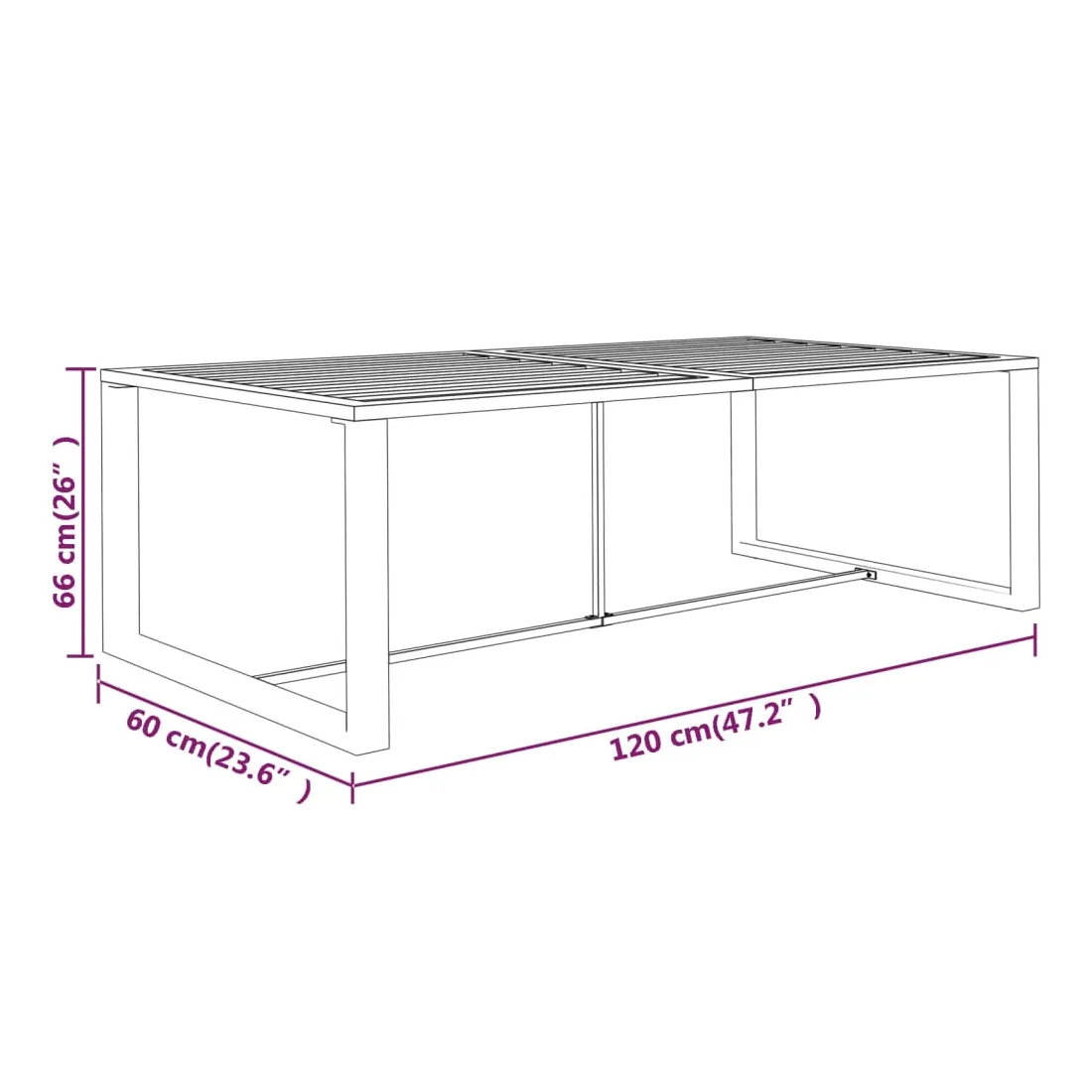 - Dimensions de la table : 120 x 60 x 66 cm (L x l x H)