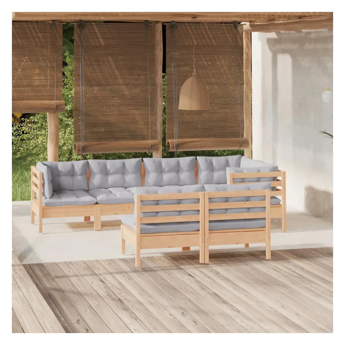 Ce salon de jardin est un excellent choix pour vous détendre et profiter du beau temps, faire une sieste ou discuter avec votre famille ou vos amis. Le salon de patio est fabriqué en bois de pin massif, ce qui le rend robuste et stable. Les coussins ajoutent un confort supplémentaire. Vous pouvez le combiner avec d’autres segments modulaires pour créer vos propres configurations de salon de jardin ! Remarque : afin de prolonger la durée de vie des meubles d'extérieur, nous vous recommandons de les protéger avec une housse imperméable.