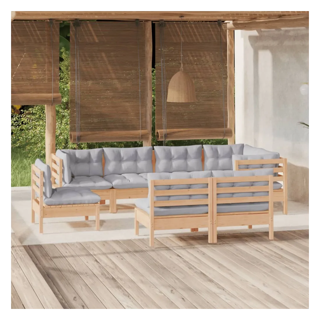 Ce salon de jardin est un excellent choix pour vous détendre et profiter du beau temps, faire une sieste ou discuter avec votre famille ou vos amis. Le salon de patio est fabriqué en bois de pin massif, ce qui le rend robuste et stable. Les coussins ajoutent un confort supplémentaire. Vous pouvez le combiner avec d’autres segments modulaires pour créer vos propres configurations de salon de jardin ! Remarque : afin de prolonger la durée de vie des meubles d'extérieur, nous vous recommandons de les protéger avec une housse imperméable.