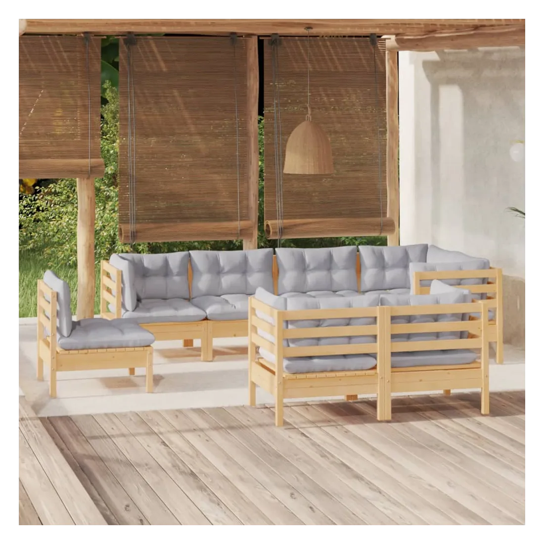 Ce salon de jardin est un excellent choix pour vous détendre et profiter du beau temps, faire une sieste ou discuter avec votre famille ou vos amis. Le salon de patio est fabriqué en bois de pin massif, ce qui le rend robuste et stable. Les coussins ajoutent un confort supplémentaire. Vous pouvez le combiner avec d’autres segments modulaires pour créer vos propres configurations de salon de jardin ! Remarque : afin de prolonger la durée de vie des meubles d'extérieur, nous vous recommandons de les protéger avec une housse imperméable.