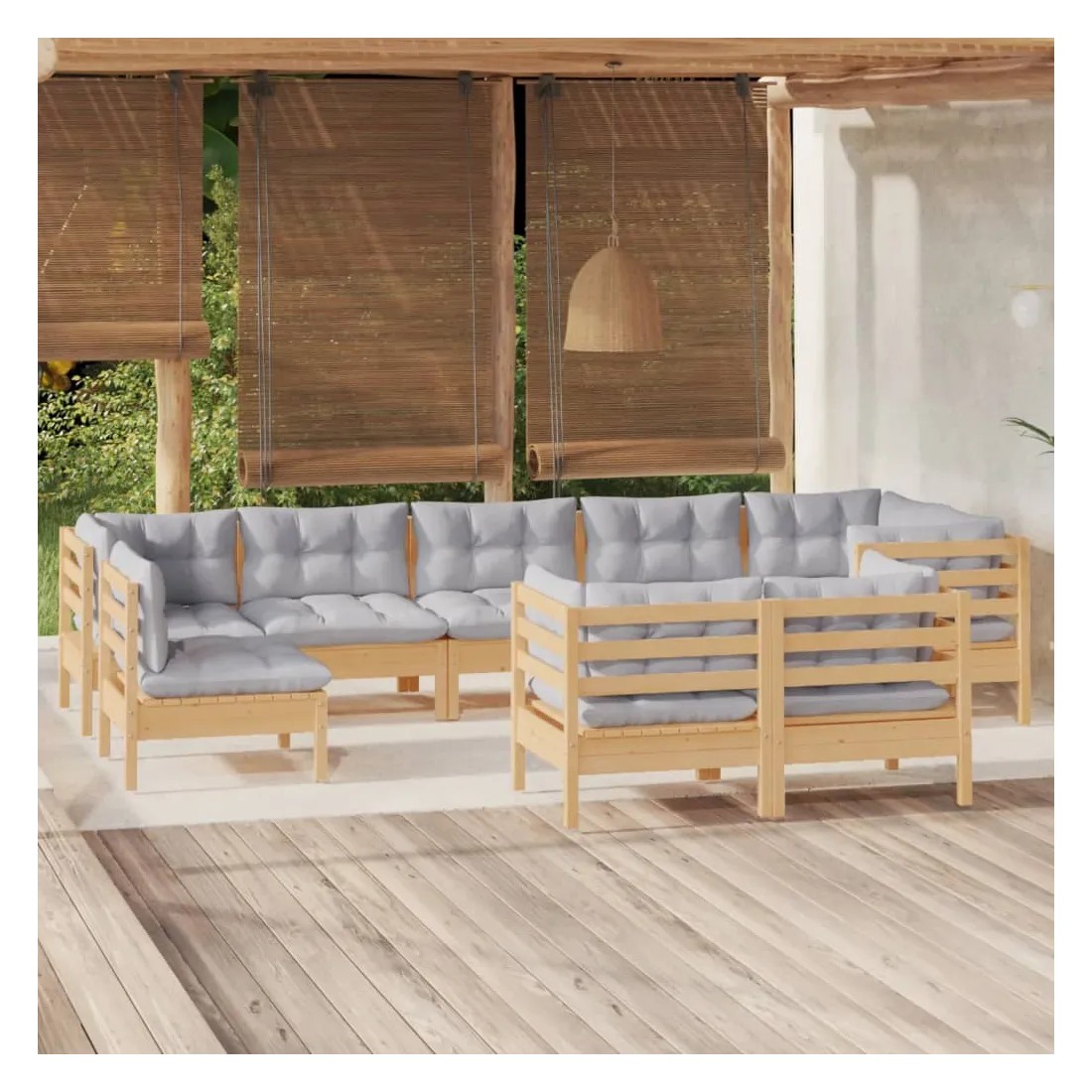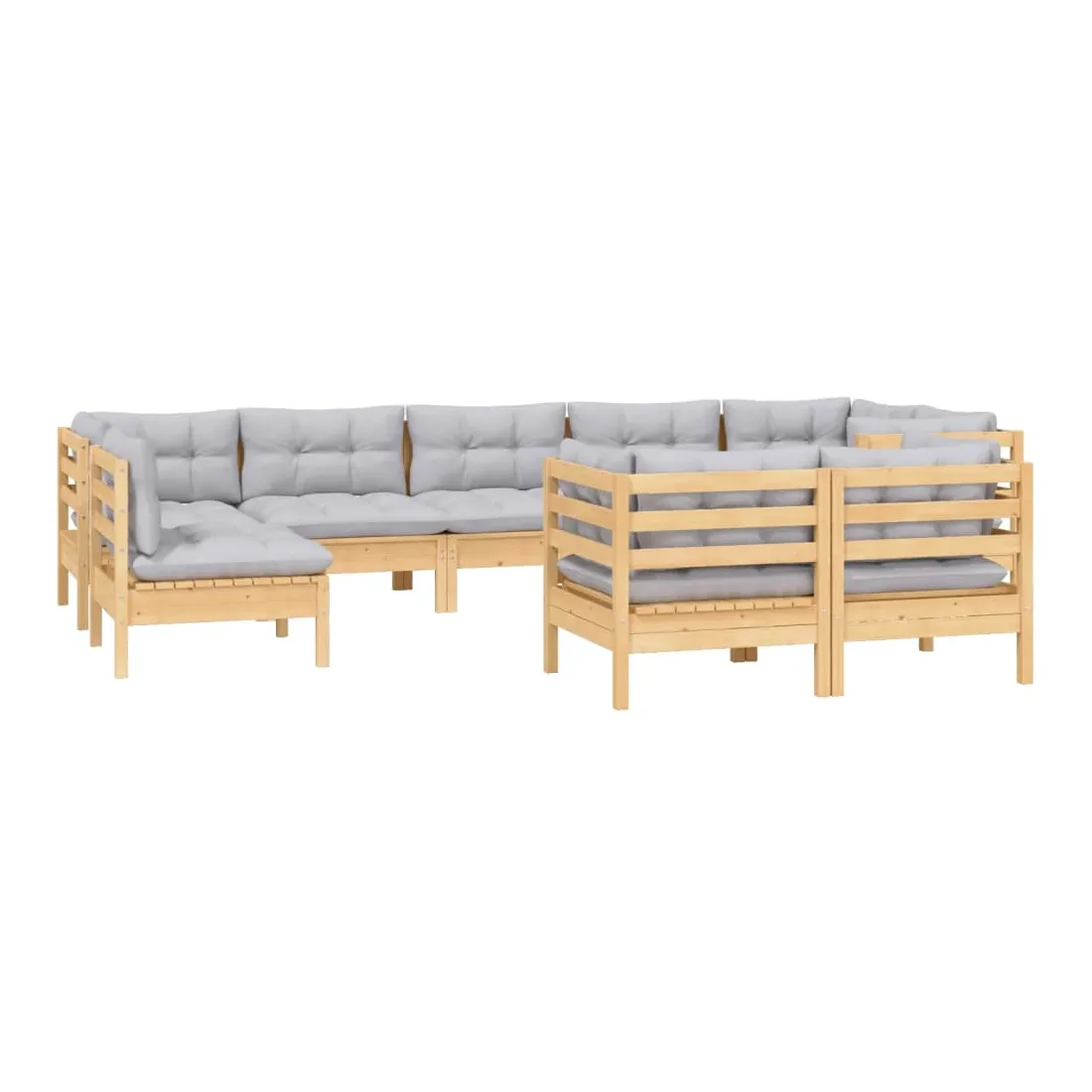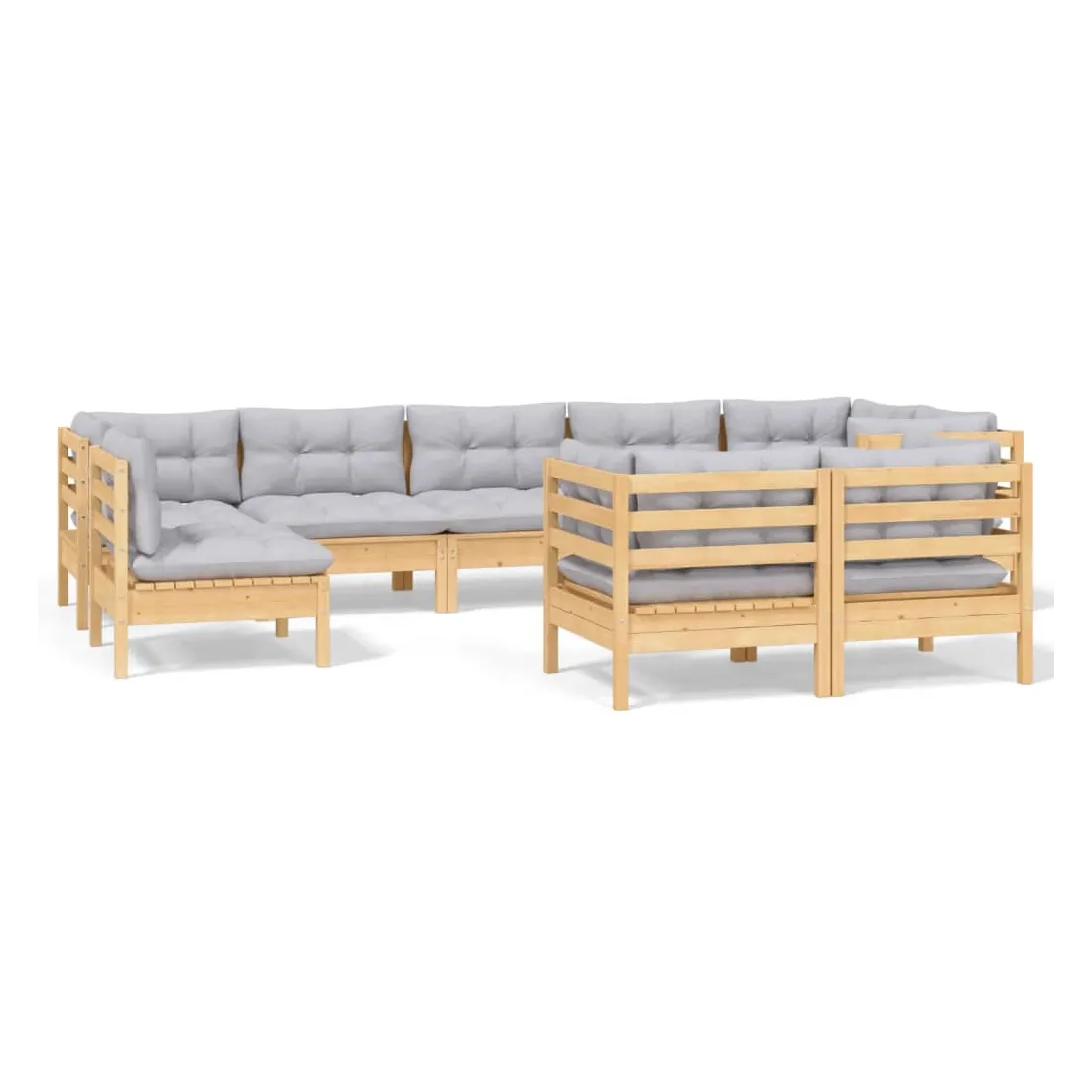 Ce salon de jardin est un excellent choix pour vous détendre et profiter du beau temps, faire une sieste ou discuter avec votre famille ou vos amis. Le salon de patio est fabriqué en bois de pin massif, ce qui le rend robuste et stable. Les coussins ajoutent un confort supplémentaire. Vous pouvez le combiner avec d’autres segments modulaires pour créer vos propres configurations de salon de jardin ! Remarque : afin de prolonger la durée de vie des meubles d'extérieur, nous vous recommandons de les protéger avec une housse imperméable.