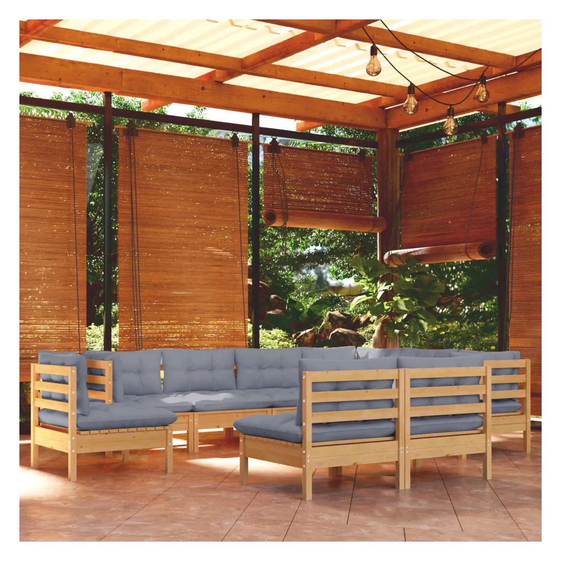 Ce salon de jardin est un excellent choix pour vous détendre et profiter du beau temps, faire une sieste ou discuter avec votre famille ou vos amis. Le salon de patio est fabriqué en bois de pin massif, ce qui le rend robuste et stable. Les coussins ajoutent un confort supplémentaire. Vous pouvez le combiner avec d’autres segments modulaires pour créer vos propres configurations de salon de jardin ! Remarque : afin de prolonger la durée de vie des meubles d'extérieur, nous vous recommandons de les protéger avec une housse imperméable.