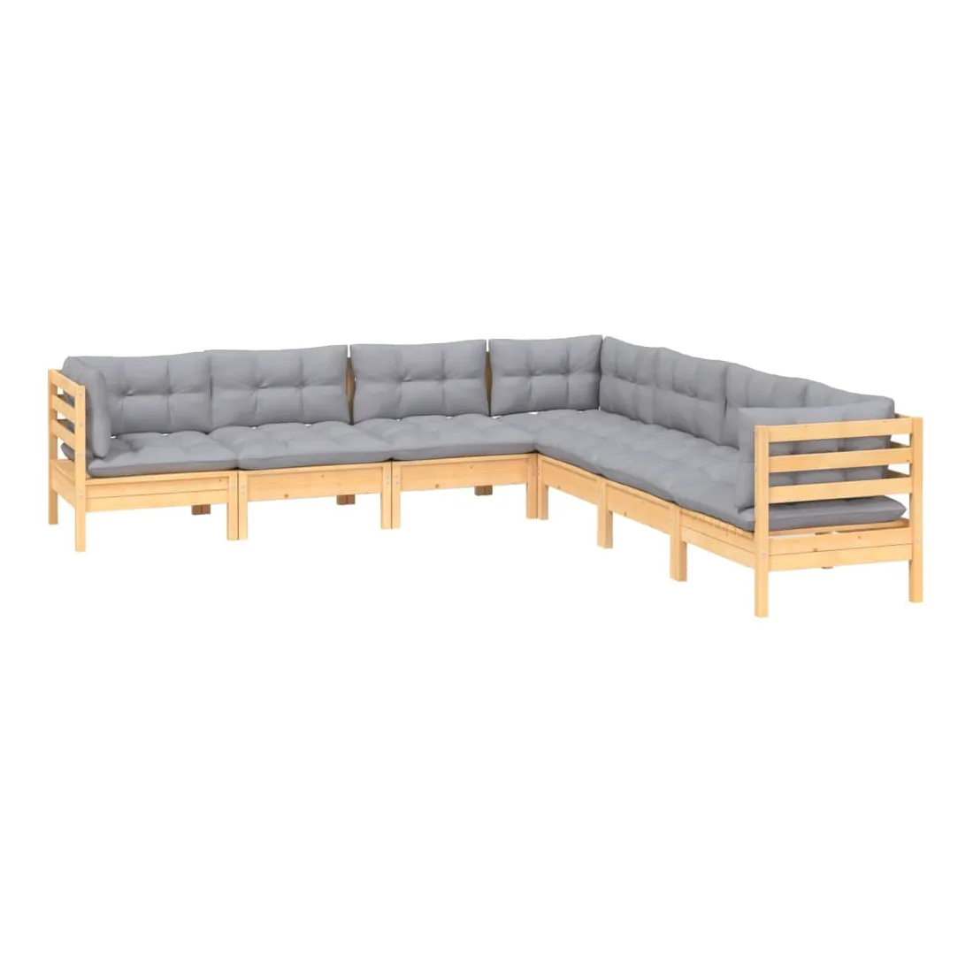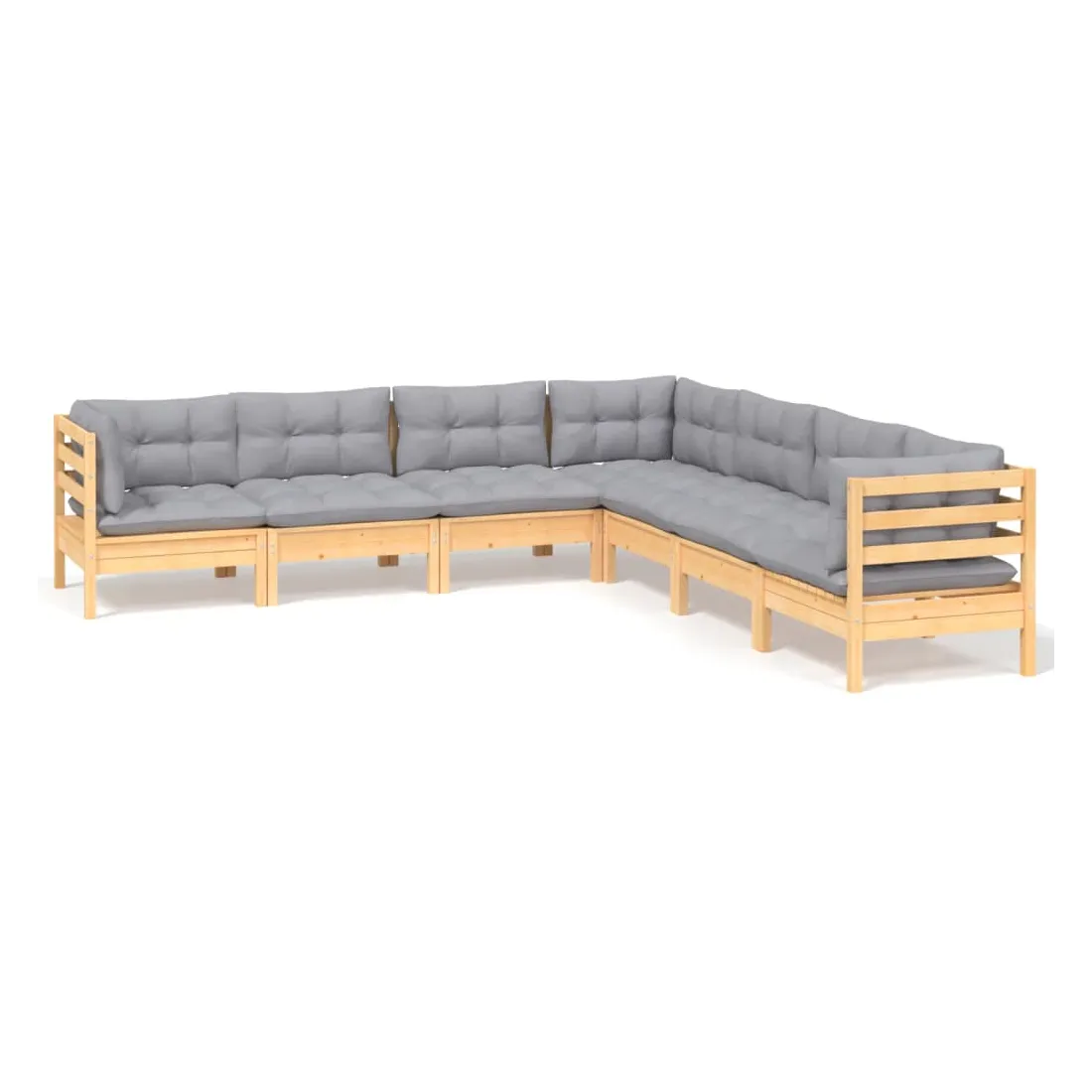 Ce salon de jardin est un excellent choix pour vous détendre et profiter du beau temps, faire une sieste ou discuter avec votre famille ou vos amis. Le salon de patio est fabriqué en bois de pin massif, ce qui le rend robuste et stable. Les coussins ajoutent un confort supplémentaire. Vous pouvez le combiner avec d’autres segments modulaires pour créer vos propres configurations de salon de jardin ! Remarque : afin de prolonger la durée de vie des meubles d'extérieur, nous vous recommandons de les protéger avec une housse imperméable.