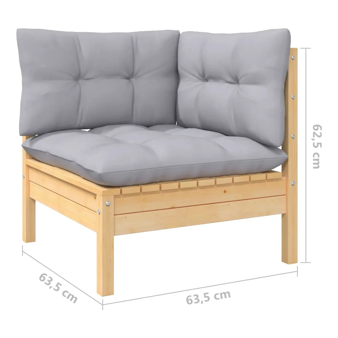 - Dimensions du canapé d'angle : 63,5 x 63,5 x 62,5 cm (l x P x H)