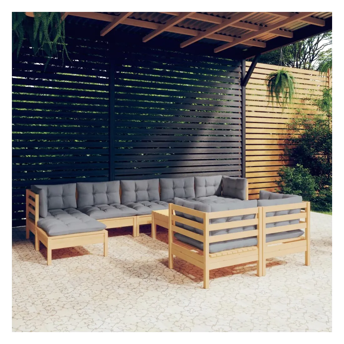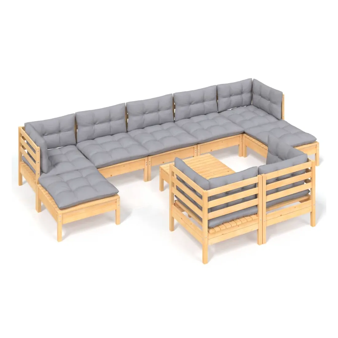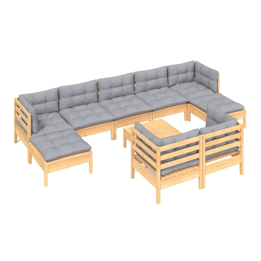 Salon de jardin 10 pcs avec coussins gris bois de pin massif