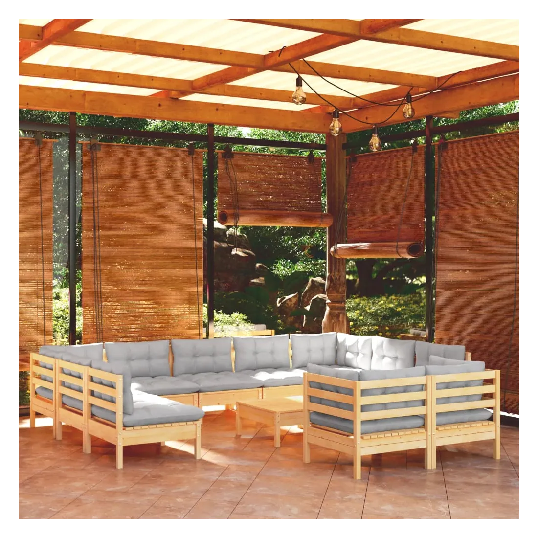 Ce salon de jardin est un excellent choix pour vous détendre et profiter du beau temps, faire une sieste ou discuter avec votre famille ou vos amis. Le salon de patio est fabriqué en bois de pin massif, ce qui le rend robuste et stable. Les coussins ajoutent un confort supplémentaire. Vous pouvez le combiner avec d’autres segments modulaires pour créer vos propres configurations de salon de jardin ! Remarque : afin de prolonger la durée de vie des meubles d'extérieur, nous vous recommandons de les protéger avec une housse imperméable.