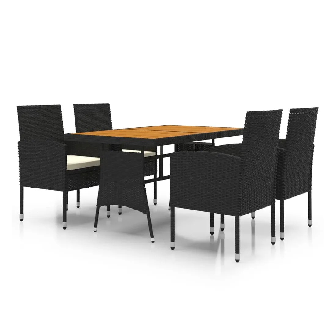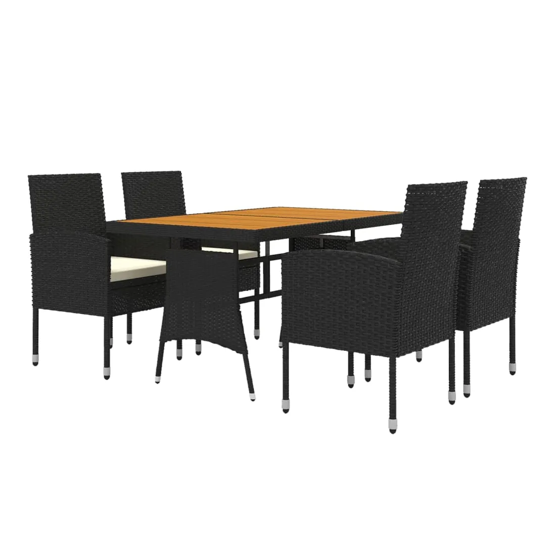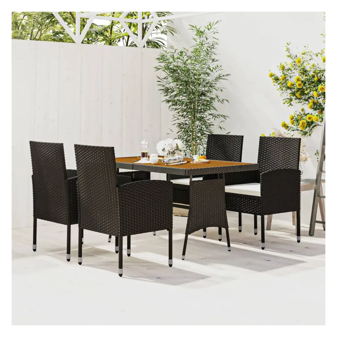 Ce mobilier à dîner d'extérieur, au design élégant, est un excellent choix pour vos repas ou vos moments de détente sur votre patio ou dans votre jardin. Matériau de qualité supérieure : l'ensemble de salle à manger de jardin est conçu avec de la résine tressée imperméable, ce qui le rend facile à nettoyer, résistant à l'usure et adapté à une utilisation quotidienne à l'extérieur.Cadre robuste : doté d'un cadre en acier, la table et les chaises sont durables et stables.Chaises confortables : les chaises de jardin sont conçues dans une forme plus ergonomique pour un confort maximal. Des coussins sont inclus pour un soutien supplémentaire.Table pratique : le dessus de table est en bois d'acacia solide pour un support résistant, facile à nettoyer et à entretenir. Remarque :Afin de prolonger la durée de vie de votre mobilier d'extérieur, nous vous recommandons de le protéger avec une housse imperméable.