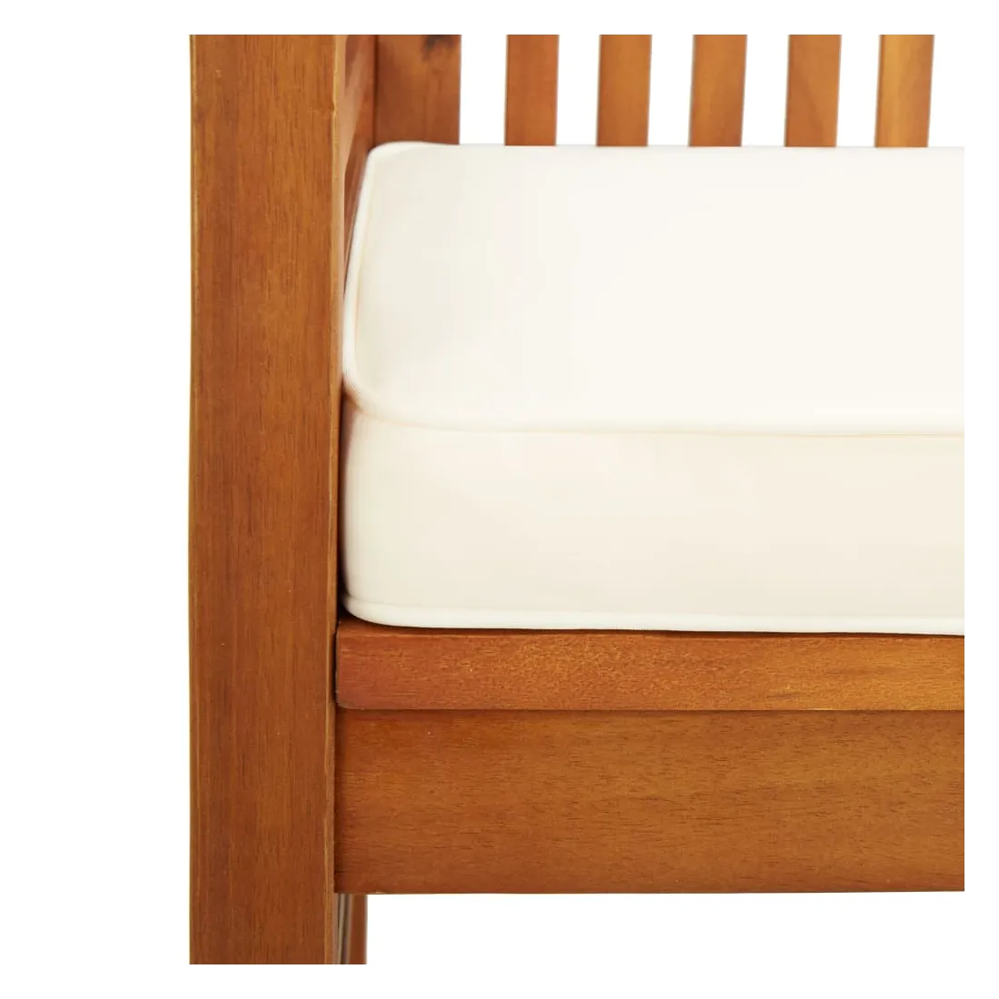 Cet ensemble de salle à manger d'extérieur classique en bois est un excellent choix pour manger et vous détendre avec votre famille et vos amis dans le jardin ou sur la terrasse. Bois d'acacia massif : le bois d'acacia massif est un matériau naturel magnifique. Le bois d'acacia un bois dur tropical, qui est dense, robuste et durable. Cadre robuste et stable : le cadre en bois assure robustesse et stabilité. Design confortable : les dossiers et les accoudoirs légèrement incurvés ajoutent un confort d'assise supplémentaire pour les bancs. De plus, les coussins épais et amovibles offrent un confort optimal pour votre temps d'assise en plein air. Dessus de table robuste : le dessus de table robuste avec un design à lattes offre suffisamment d'espace pour mettre vos collations, paniers de f
