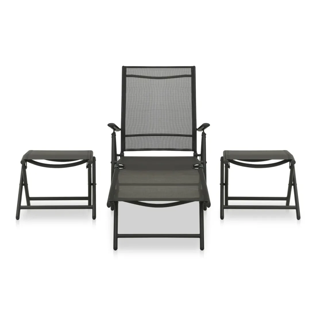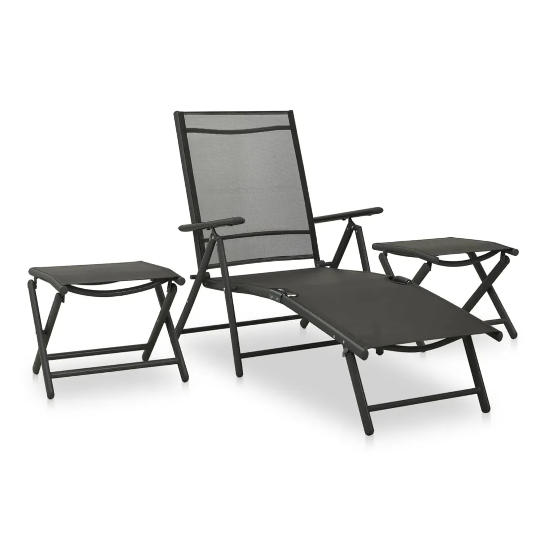 Profitez d’un moment de détente agréable avec vos amis ou votre famille à l'extérieur sur cet ensemble de salon de jardin ! Le cadre en aluminium enduit de poudre rend le meuble robuste et durable, offrant un service à vie. Le fauteuil dispose d’un dossier réglable, de sorte que vous puissiez toujours trouver la position la plus confortable. Le siège est confortable avec textilène respirant. Les repose-pieds ajoutent plus de confort. Vous pouvez également les utiliser comme tables basses pour placer des boissons et des aliments à portée de main. Remarque : afin de prolonger la durée de vie des meubles d'extérieur, nous vous recommandons de les protéger avec une housse imperméable.