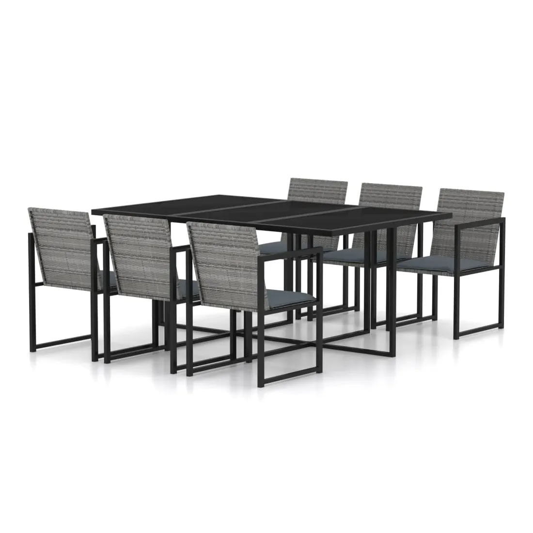 Cet ensemble à manger d'extérieur tendance est un excellent choix pour les repas en plein air sur une terrasse ou un jardin. Les cadres en acier enduit de poudre rendent la table et les chaises stables et solides. Le dessus de table en verre trempé est facile à nettoyer avec un chiffon humide. Grâce à la construction en résine tressée légère, vous pouvez déplacer les chaises facilement. De plus, les coussins ajoutent un confort supplémentaire à votre temps de repas. Les housses de coussin avec fermeture éclair sont amovibles et lavables. Remarque importante : nous vous recommandons de couvrir l'ensemble de salle à manger pendant la pluie, la neige et le gel pour une utilisation durable.