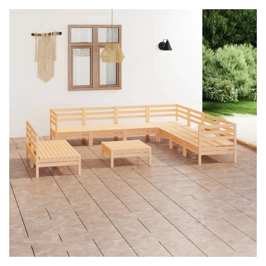 Salon de jardin 10 pcs Bois de pin massif