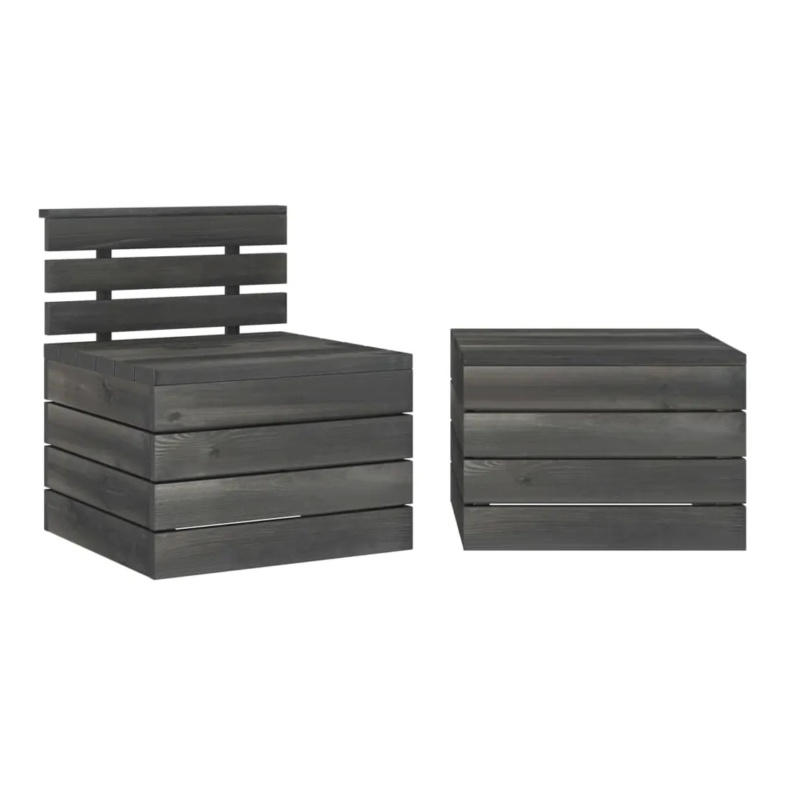 Salon de jardin palette 2 pcs Bois de pin massif Gris foncé