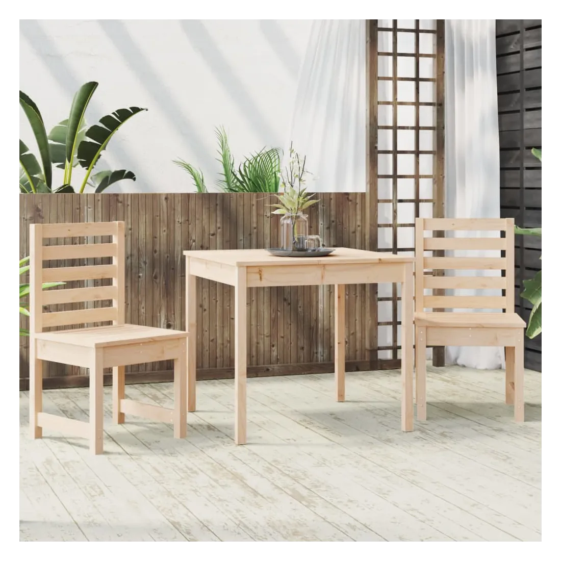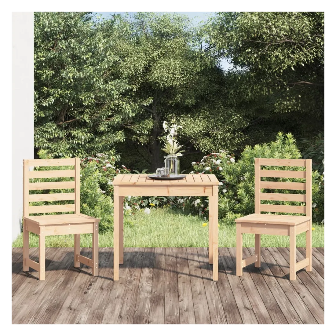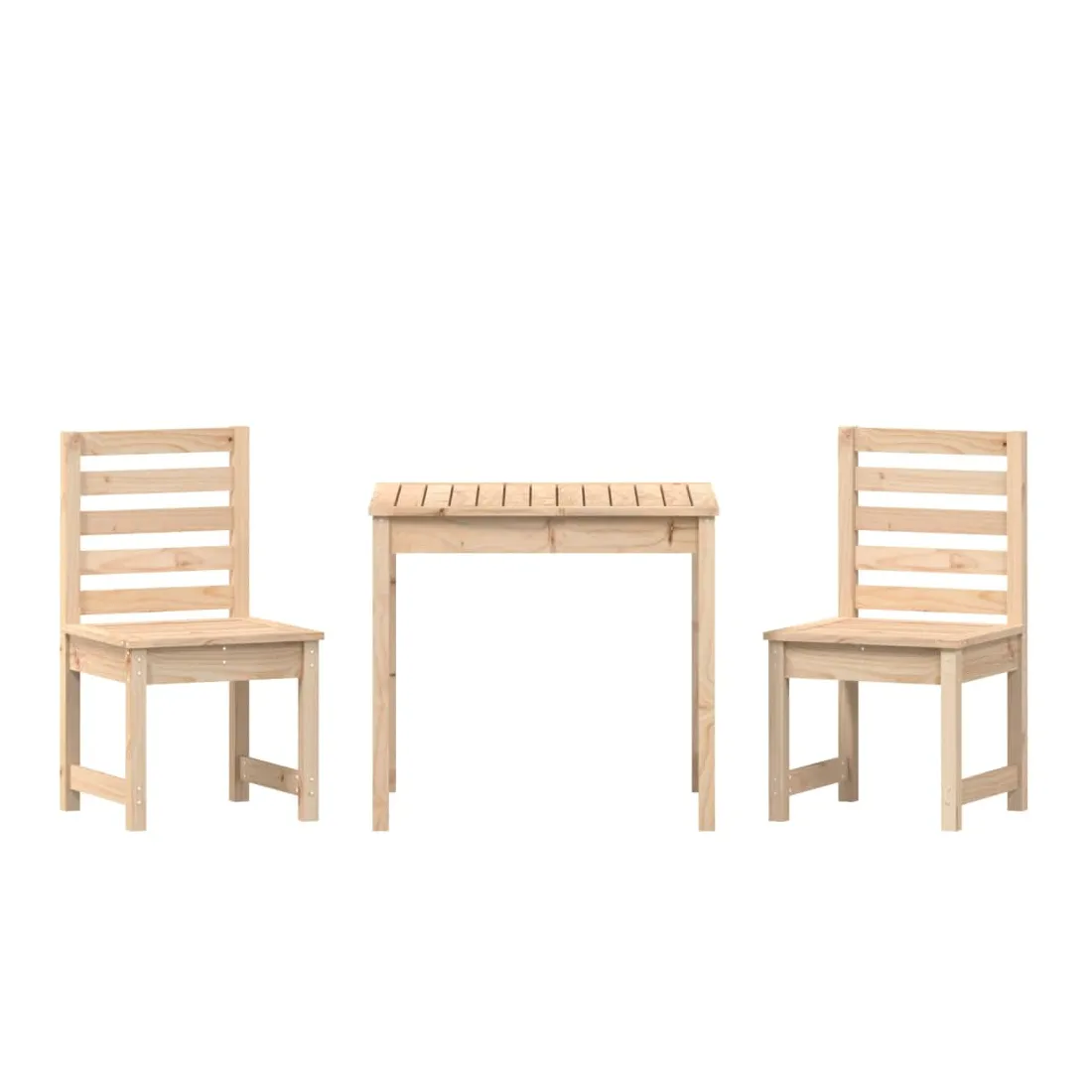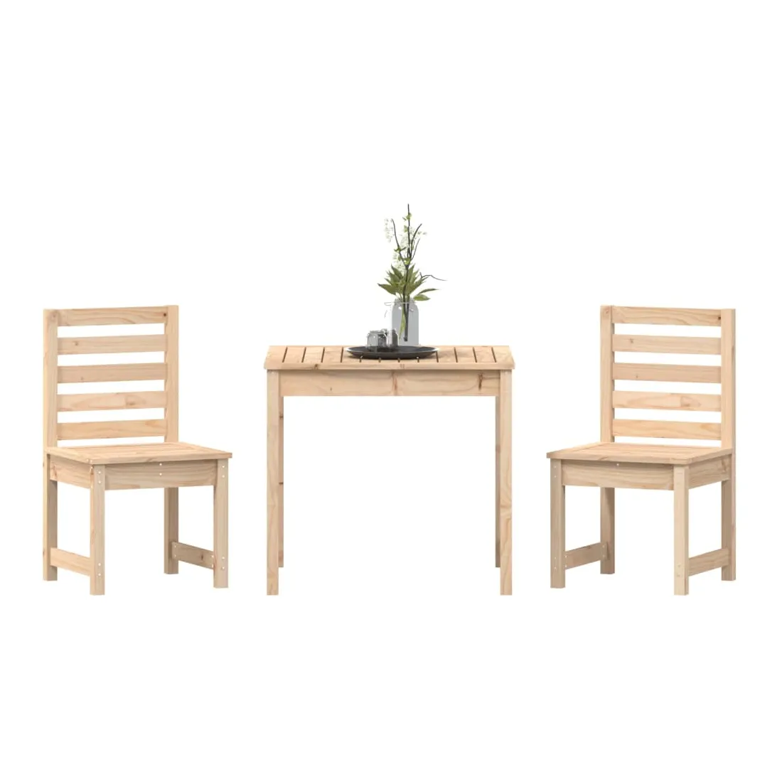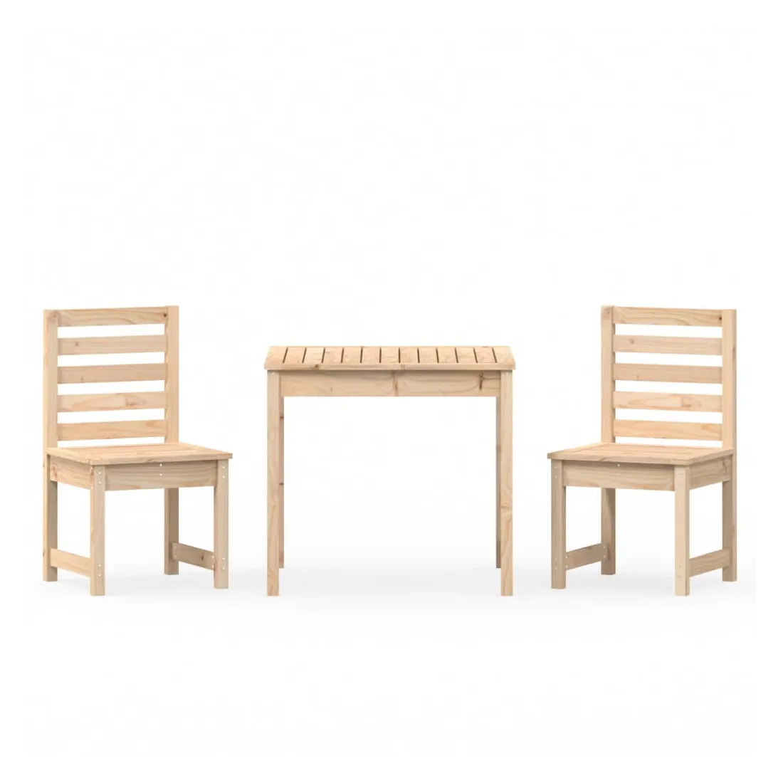 Cet ensemble de bistro de jardin classique en bois est parfait pour une utilisation à l'extérieur et est conçu pour être le point central de votre jardin, terrasse ou patio, etc. Bois de pin massif : l'ensemble de bistro est fabriqué en bois de pin massif. Le bois de pin massif est un matériau naturel magnifique. Le bois de pin a un grain droit et les nœuds donnent au matériau son aspect caractéristique et rustique.Dessus de table pratique : cette table de bistrot vous offre un dessus de table solide. Vous pouvez placer vos collations, boissons et n'importe laquelle de vos décorations préférées.Expérience d'assise confortable : l'assise et le dossier à lattes de la chaise de bistrot offrent un excellent soutien.Nombreuses applications : l'ensemble de bistrot d'extérieur au design simple et intemporel convient aux balcons, jardins, terrasses, etc. Bon à savoir :Pour faciliter au maximum le montage, chaque produit est livré avec des instructions. Remarque :Pour que vos meubles d'extérieur restent beaux, nous vous recommandons de les protéger avec une housse imperméable.