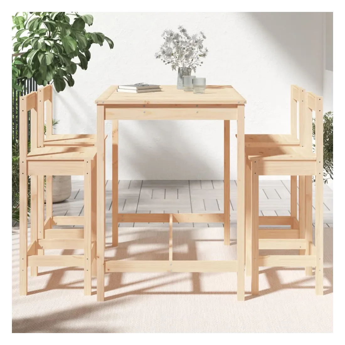 Prenez une gorgée de votre boisson préférée ou profitez d'un bon repas avec votre famille et vos amis autour de cet ensemble de bar de jardin en bois ! Bois de pin massif : cet ensemble de bar est fabriqué en bois de pin massif. le bois de pin massif est un matériau naturel magnifique. Le bois de pin a un grain droit et les nœuds donnent au matériau son aspect caractéristique et rustique.Dessus robuste : la table de bar de l'ensemble de pub est dotée d'un dessus robuste, parfait pour placer vos boissons, vos aliments et autres objets décoratifs.Assise confortable : le tabouret de bar en bois est conçu avec un dossier et un repose-pieds intégré pour vous offrir une expérience d'assise confortable.Nombreuses applications : avec son design minimaliste, l'ensemble de bar de terrasse peut être intégré dans n'importe quel coin du jardin, terrasse, balcon, jardin, etc. Remarque :Pour que vos meubles d'extérieur restent beaux, nous vous recommandons de les protéger avec une housse imperméable.