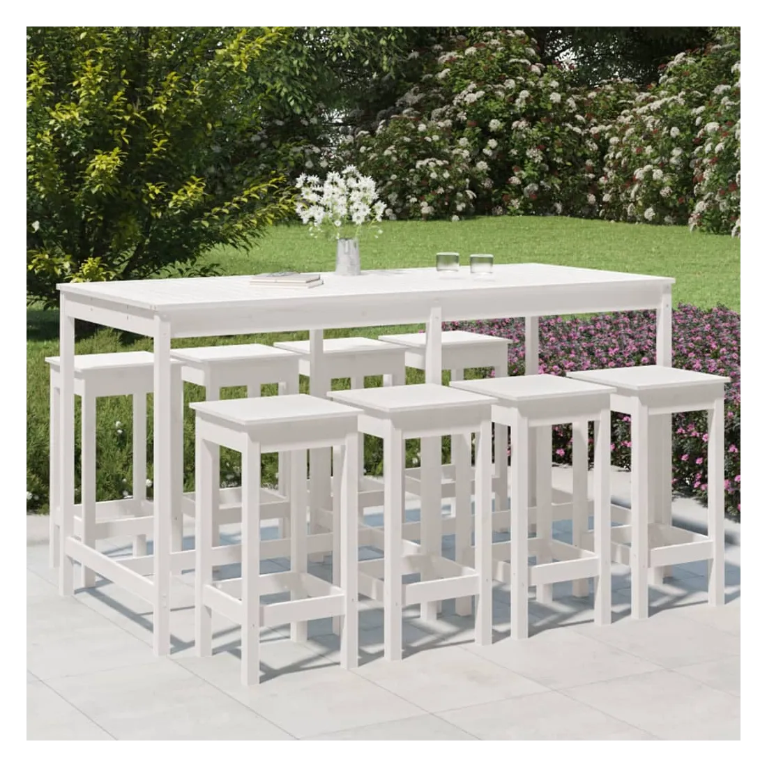 Ensemble de bar de jardin 9 pcs blanc bois de pin massif