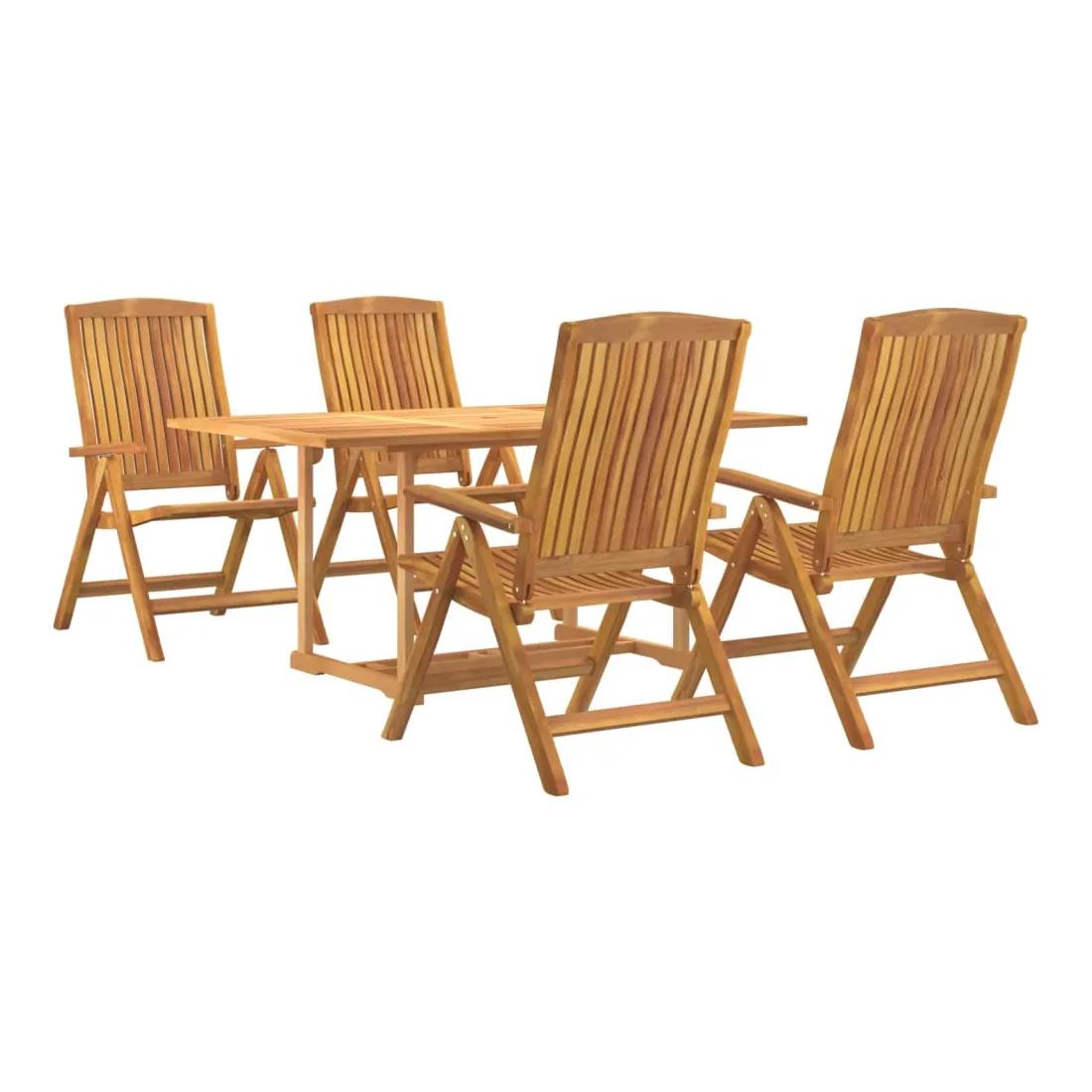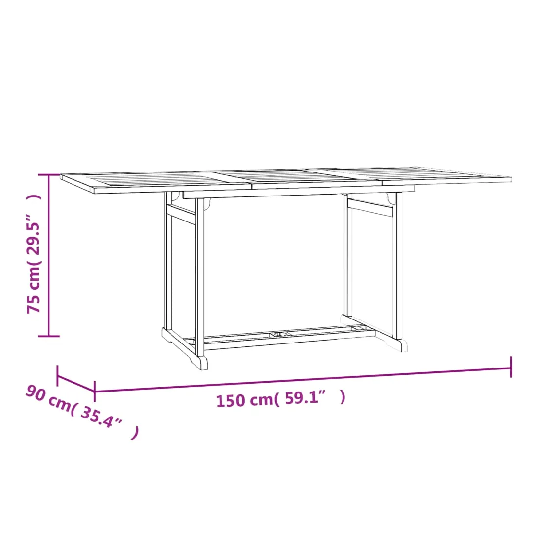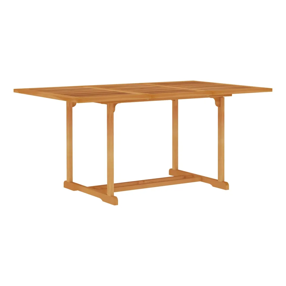 Améliorez le confort de votre espace extérieur avec cet ensemble de salle à manger de jardin en bois ! Matériau durable : le bois de teck massif est un beau matériau naturel. Il a été chevronné, séché au four, puis sablé finement pour lui donner une apparence très lisse. Le bois de teck est connu pour sa résistance exceptionnelle et résistance aux intempéries.Cadre stable : le cadre en bois de l'ensemble de salle à manger garantit robustesse et stabilité.Table pratique : grâce à sa surface sablée, la table de salle à manger est résistante aux intempéries et facile à nettoyer. Le dessus de la table est pourvu d'un trou pour parasol, ce qui permet de fixer facilement un parasol pour créer un coin ombragé.Chaises confortables : les dossiers des chaises de jardin sont réglables en 6 positions pour que vous puissiez toujours trouver la position la plus confortable. Les chaises peuvent également être facilement pliées lorsqu'elles ne sont pas utilisées, pour un rangement et un transport aisés. Bon à savoir :Pour faciliter au maximum le montage, chaque produit est livré avec des instructions. Remarque :Pour que vos meubles d'extérieur restent beaux, nous vous recommandons de les protéger avec une housse imperméable.