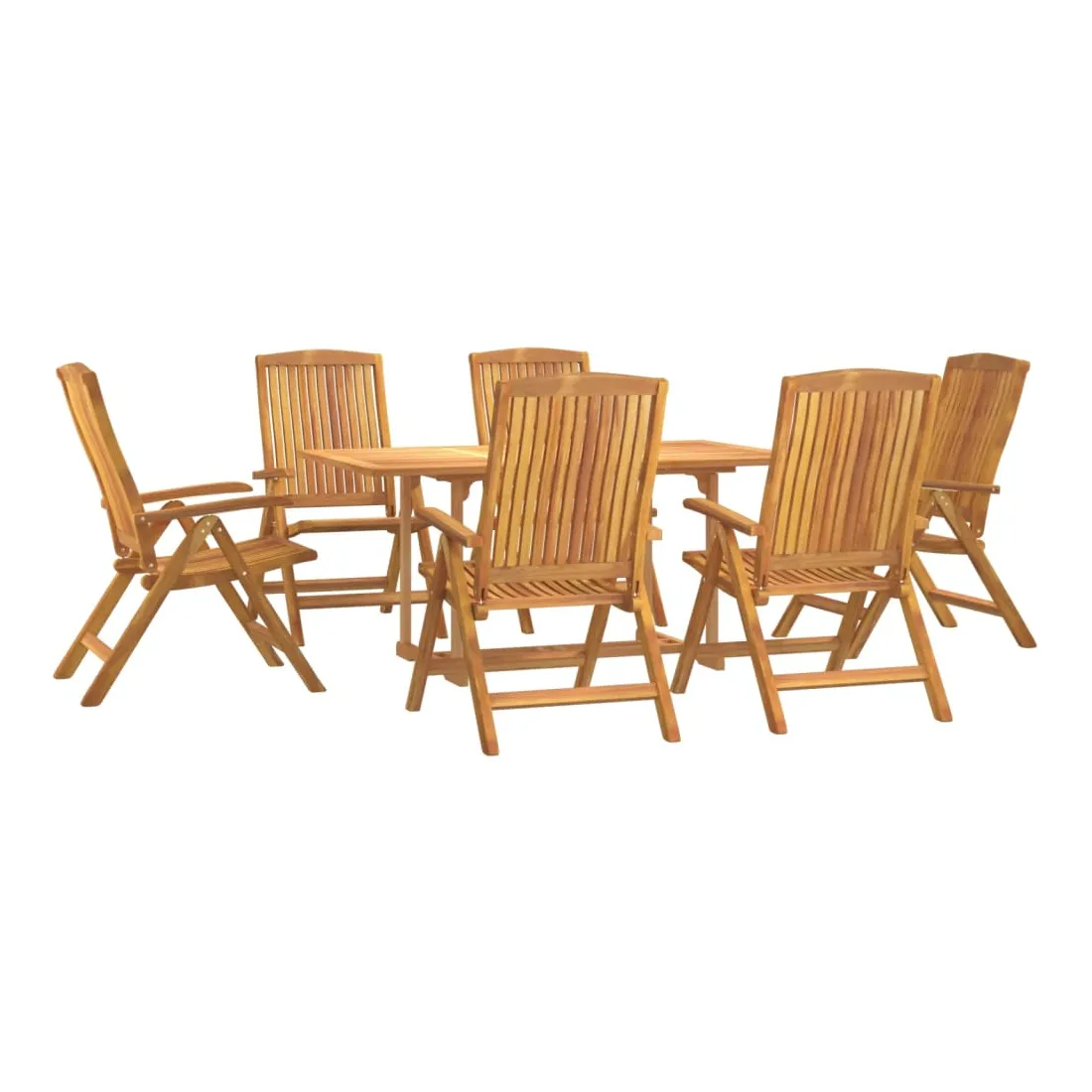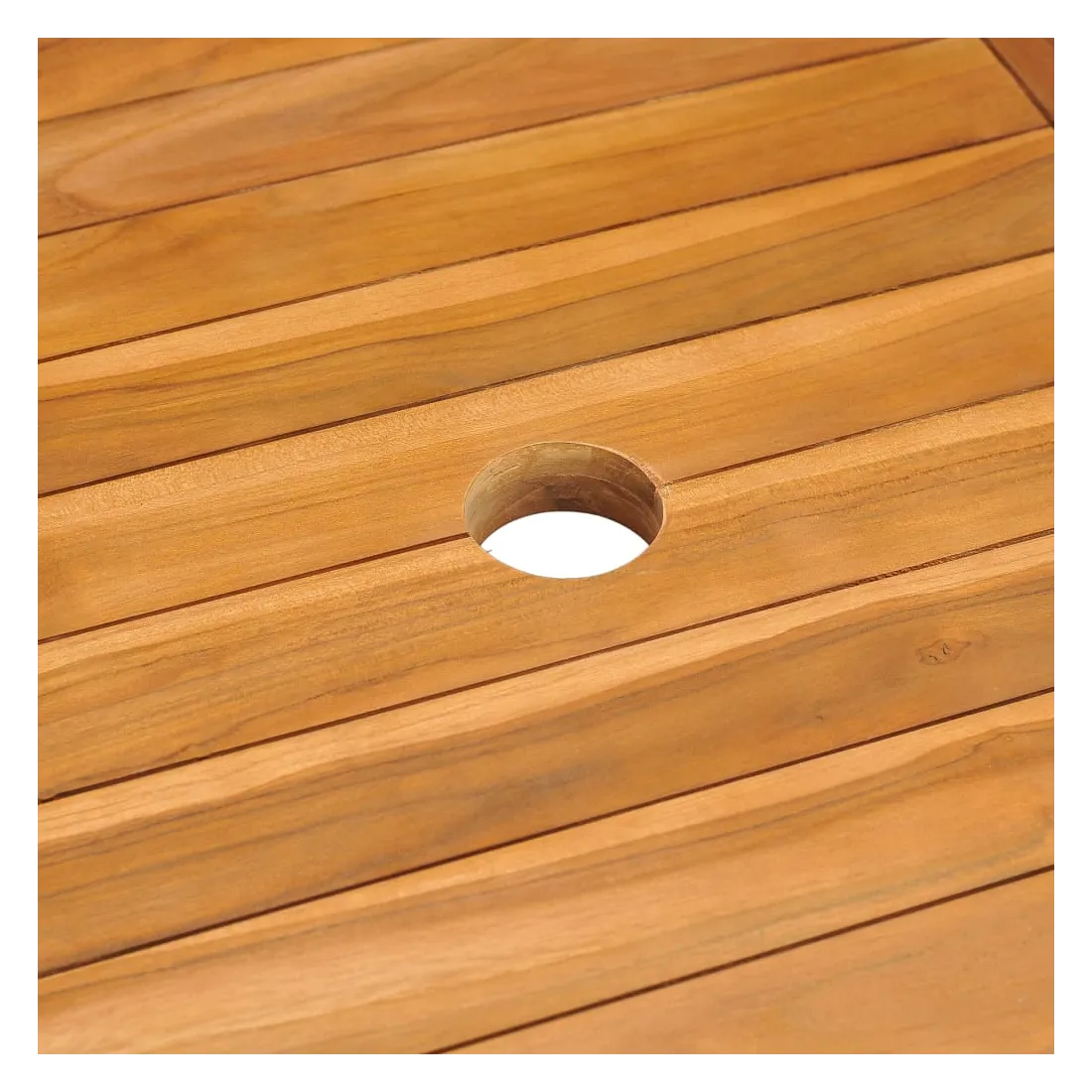 Améliorez le confort de votre espace extérieur avec cet ensemble de salle à manger de jardin en bois ! Matériau durable : le bois de teck massif est un beau matériau naturel. Il a été chevronné, séché au four, puis sablé finement pour lui donner une apparence très lisse. Le bois de teck est connu pour sa résistance exceptionnelle et résistance aux intempéries.Cadre stable : le cadre en bois de l'ensemble de salle à manger garantit robustesse et stabilité.Table pratique : grâce à sa surface sablée, la table de salle à manger est résistante aux intempéries et facile à nettoyer. Le dessus de la table est pourvu d'un trou pour parasol, ce qui permet de fixer facilement un parasol pour créer un coin ombragé.Chaises confortables : les dossiers des chaises de jardin sont réglables en 6 positions pour que vous puissiez toujours trouver la position la plus confortable. Les chaises peuvent également être facilement pliées lorsqu'elles ne sont pas utilisées, pour un rangement et un transport aisés. Bon à savoir :Pour faciliter au maximum le montage, chaque produit est livré avec des instructions. Remarque :Pour que vos meubles d'extérieur restent beaux, nous vous recommandons de les protéger avec une housse imperméable.